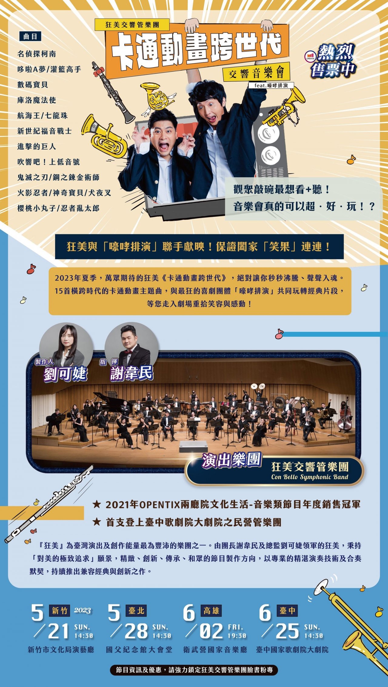 一、節目介紹: 2023 年盛夏,萬眾期待的狂美《卡通動畫跨世代》精選多部話題度最高的動畫作品,從 80 年代起的七龍珠、灌籃高手、名偵探柯南、神奇寶貝,到近代的航海王、火影忍者、鬼滅之刃…等,並邀請最具創意的「嚎哮排演」以多面向的戲劇表演、喜劇段子,復刻經典畫面和劇情橋段,加上狂美詮釋的主題曲,讓您一次滿足所有想像可能!絕對讓你秒秒沸騰、聲聲入魂。