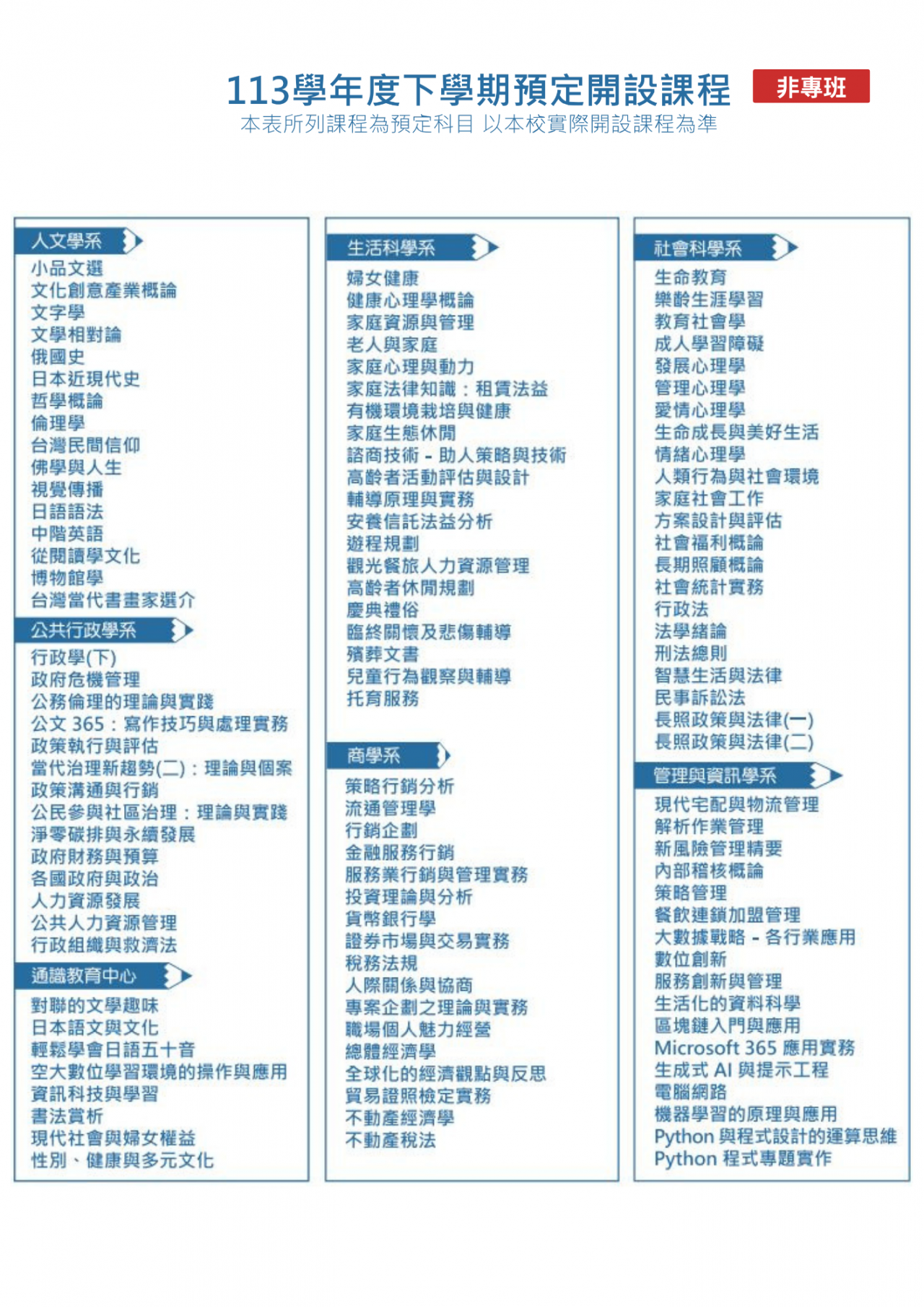 國立空中大學臺南學習指導中心113學年下學期招生資訊
