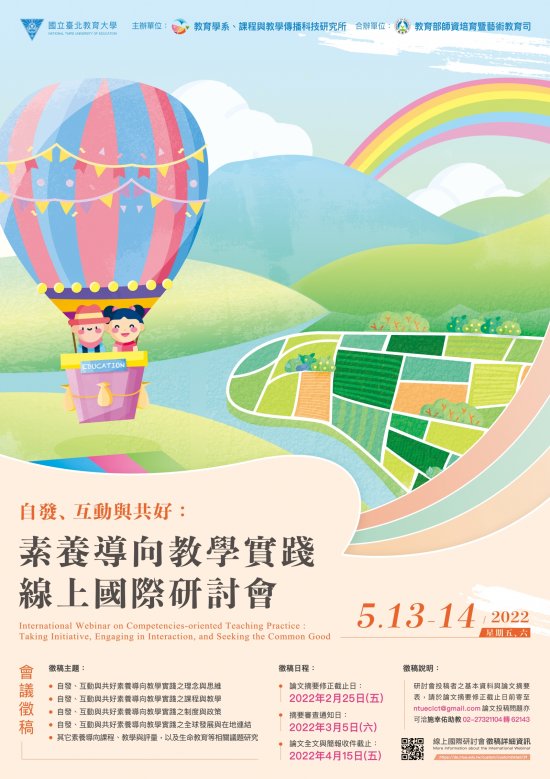 八、本次活動採線上會議方式進行,相關連結將於活動前公告於該校教育學系網頁資訊查詢: https://de.ntue.edu.tw/。