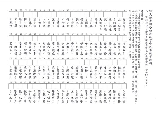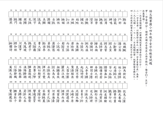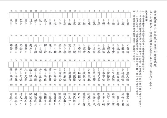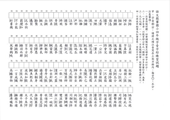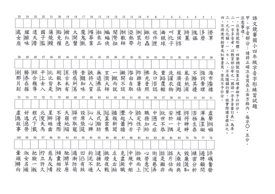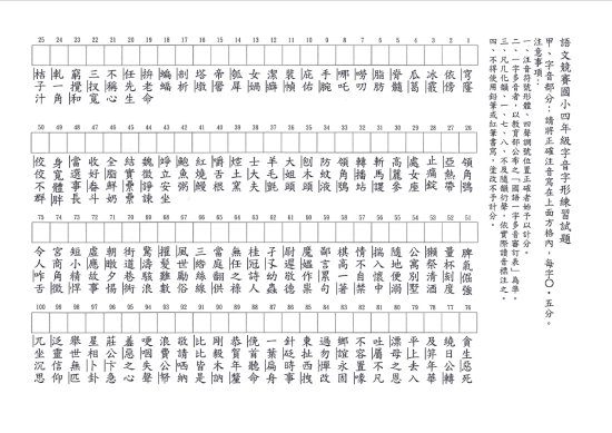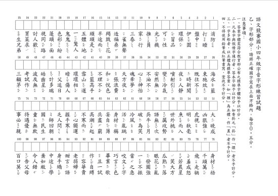 本校 114 學年度校內語文競賽四年級字音字形練習卷,請自行利用。