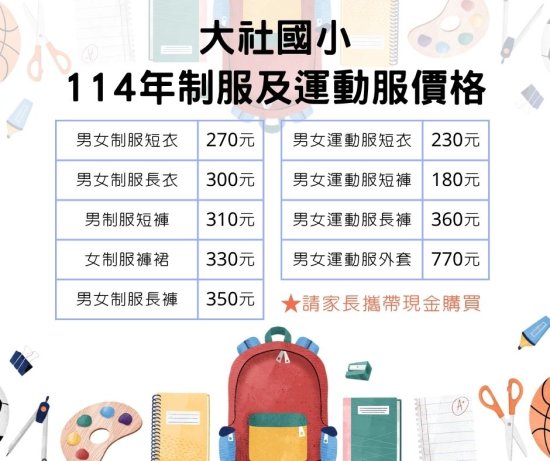 ★請家長於當日攜帶現金購買運動服。服裝金額詳見附檔。