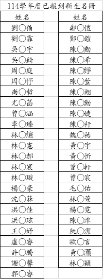 ★附上本校 114 學年度已報到新生名冊詳見附檔。