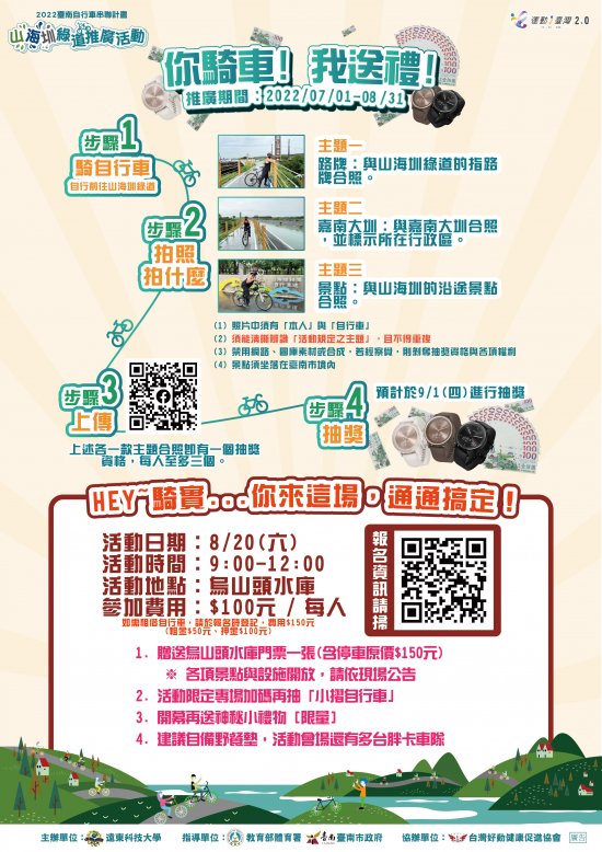 主旨:函轉遠東科技大學辦理「2022 臺南市自行車串聯計畫-山海圳綠道推廣活動」,請貴單位協助於網站發布訊息並鼓勵所屬踴躍參與,請查照。