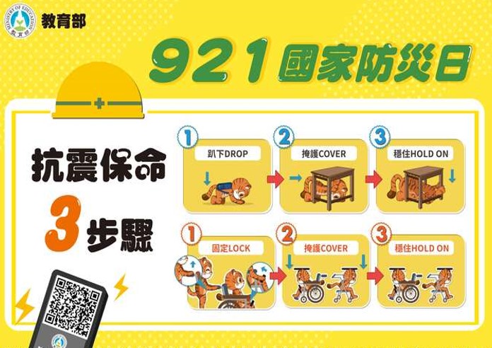 『114 年國家防災日演習』地震速報演練,臨震應變「趴下、掩護、穩住『Earthquake Disaster Drill』」
