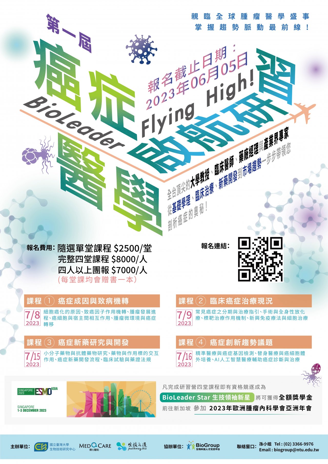(四)課程4:癌症創新趨勢議題 112年7月16日 (星期日) 13時至15時。