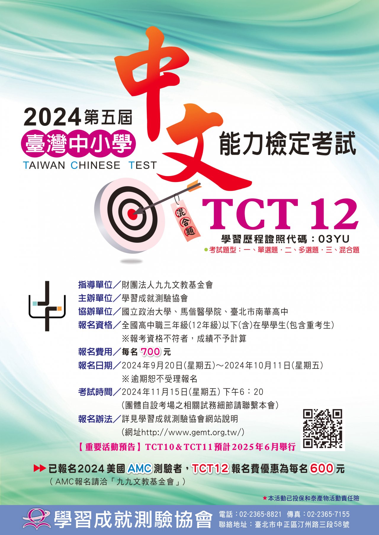 二、報名資格:TCT12-高中三年級(12年級)以下(含)在學學生(包含重考生)