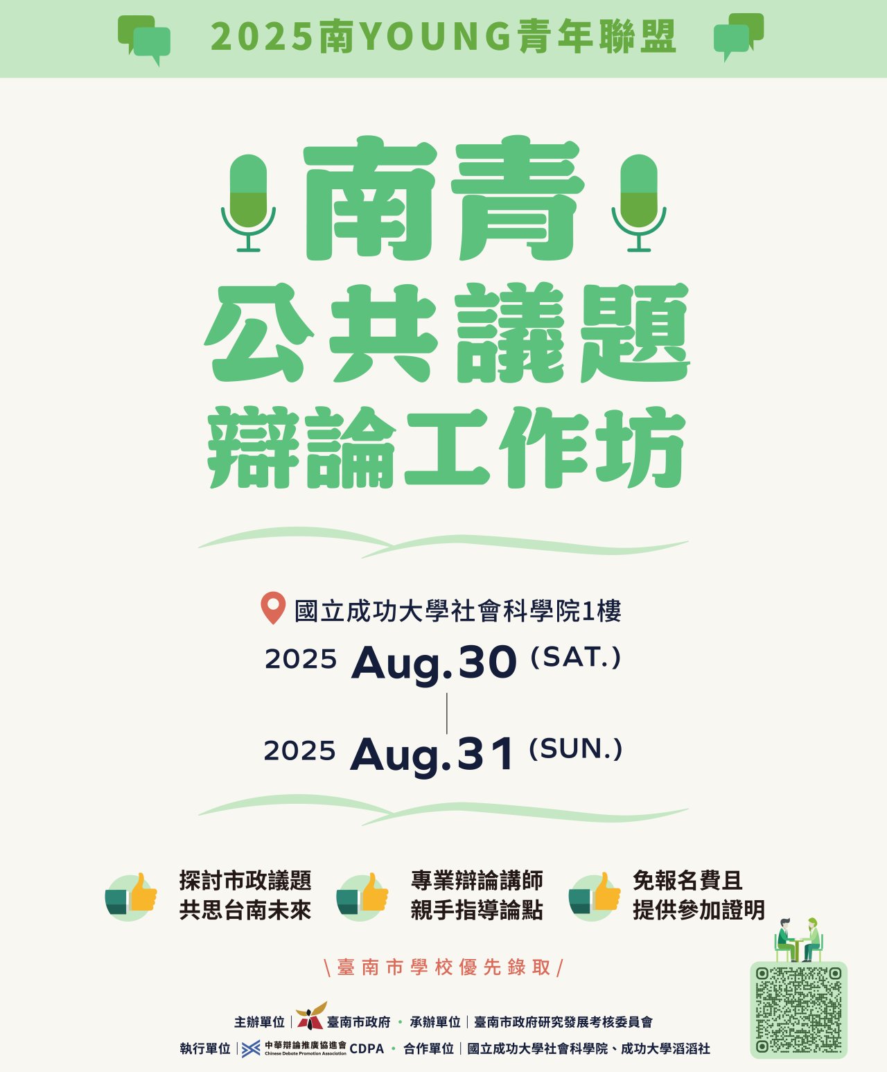 三、活動對象:對公共事務有興趣之全國大學、高中職在學學生(臺南市學校優先錄取),最多招募36名學員。↵