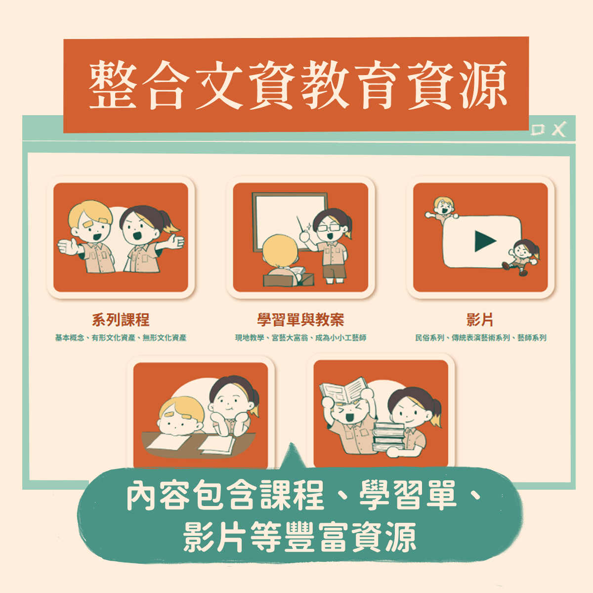 一、旨揭平台係整合本處所設計開發之文化資產相關推廣教育資源與活動資訊,以利師生、一般大眾便於查找資源。文化資產價值之所在,不僅是文化資產場域本身,更可作為讓學生認識的核心素養,因此從文化資產場域內學習的不是認識建築物件而已,更希望藉本平台讓學生可以去探索在場域之中任何可跟學習課程單元連結的各種學習知識;惠請貴校協助公告週知,並歡迎師生多加運用,至紉公誼。