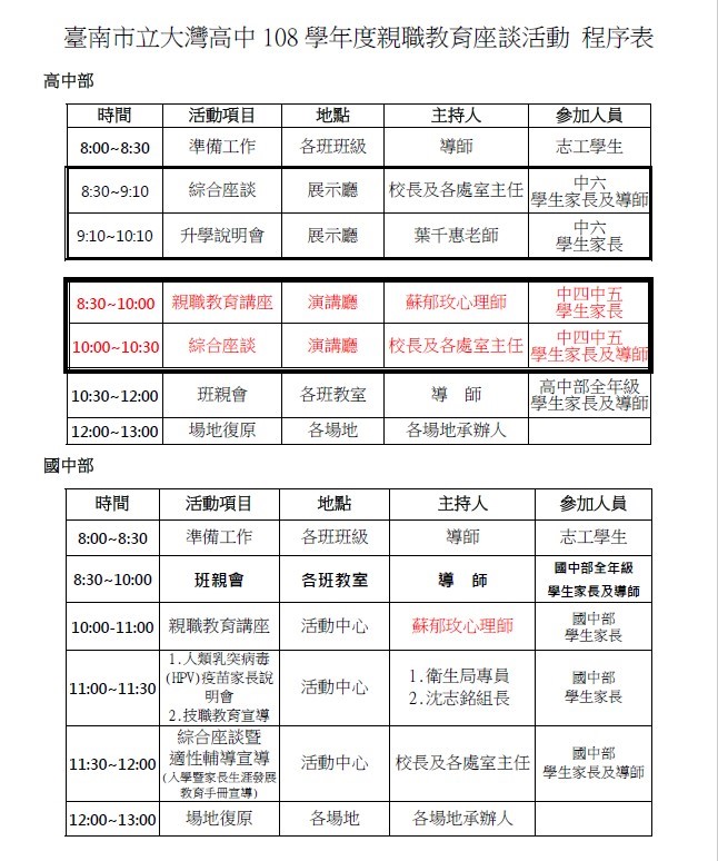 臺南市國中小課程計畫備查資源網--校長及教師公開授課一覽表