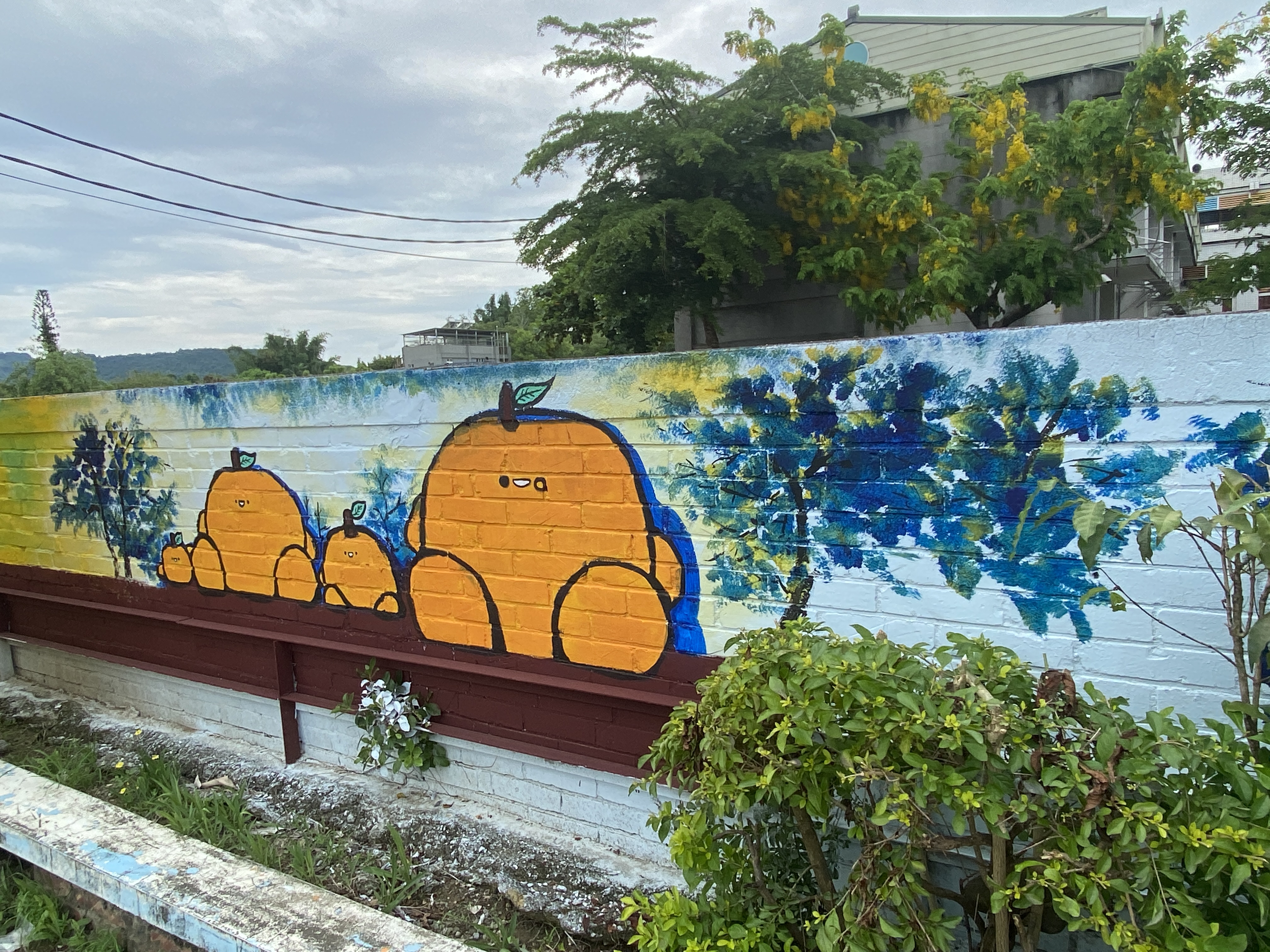 | 校園圍牆彩繪融入在地食材-椪柑 |