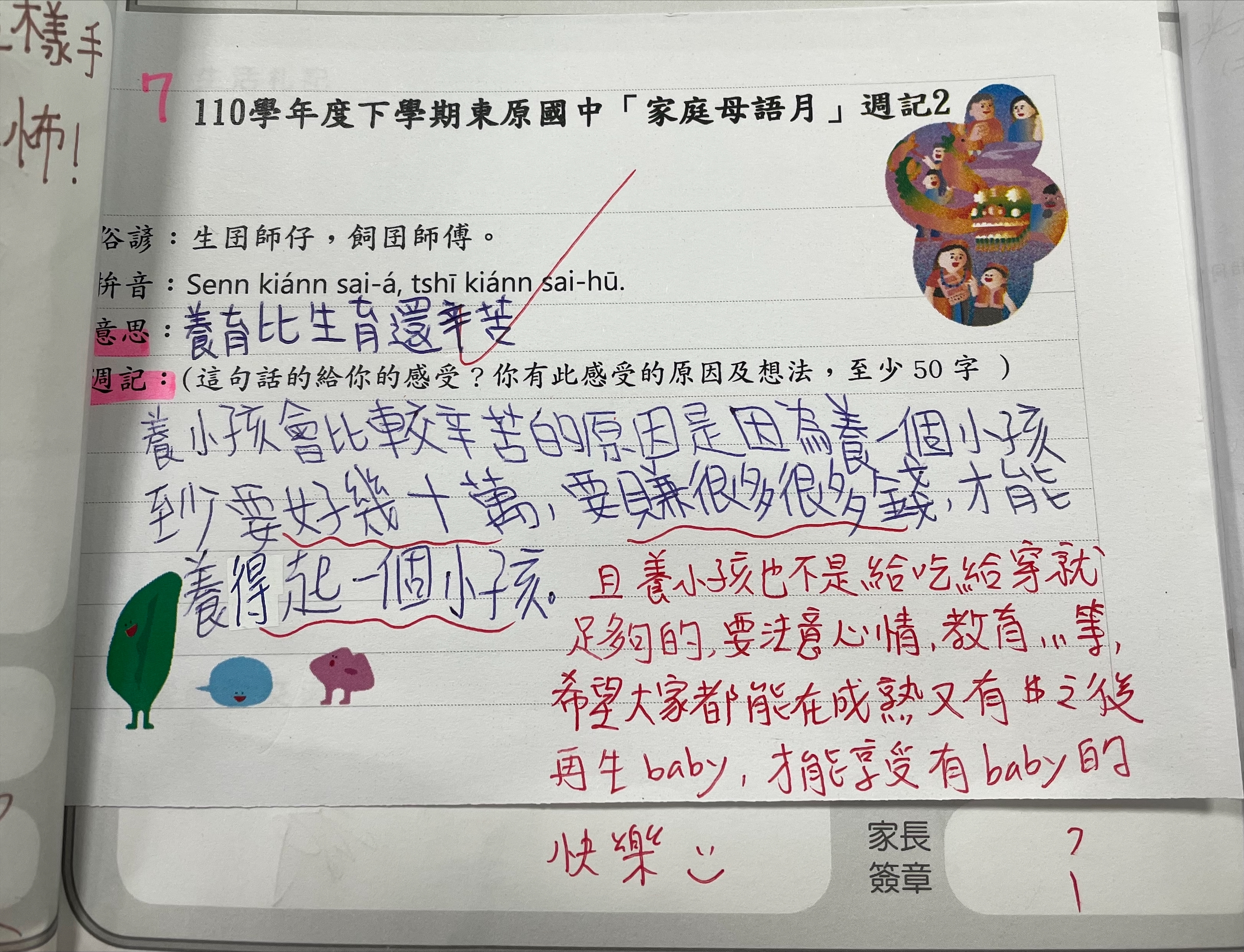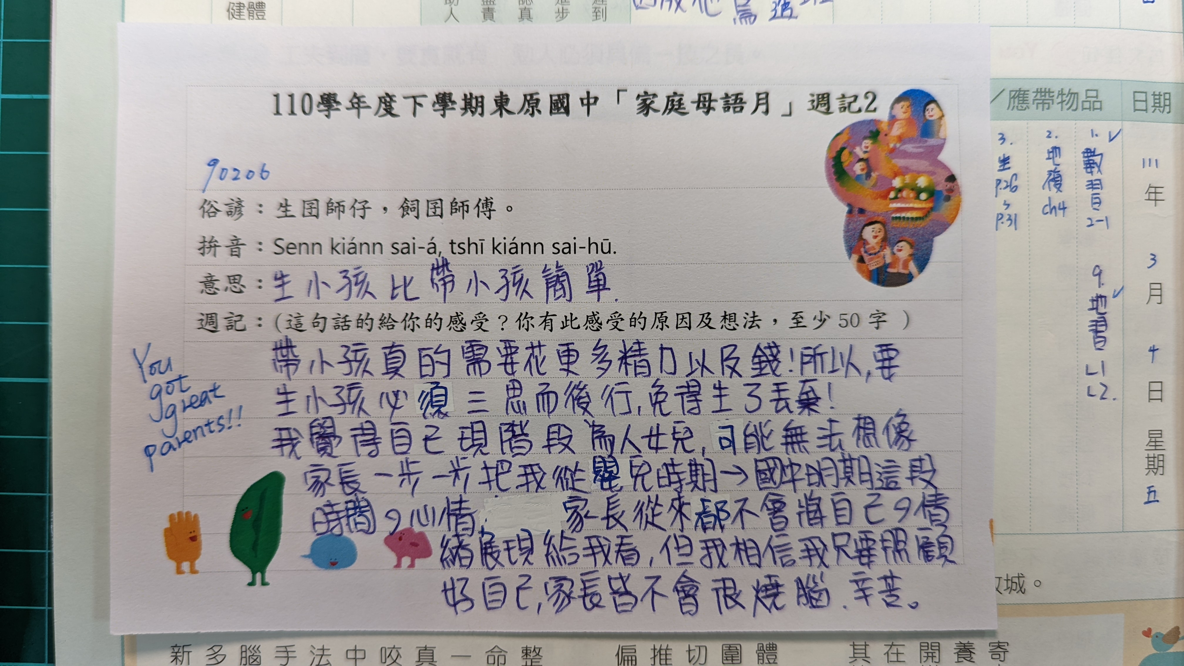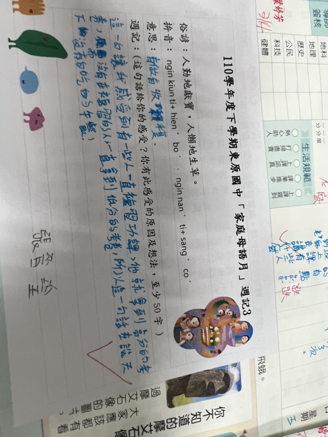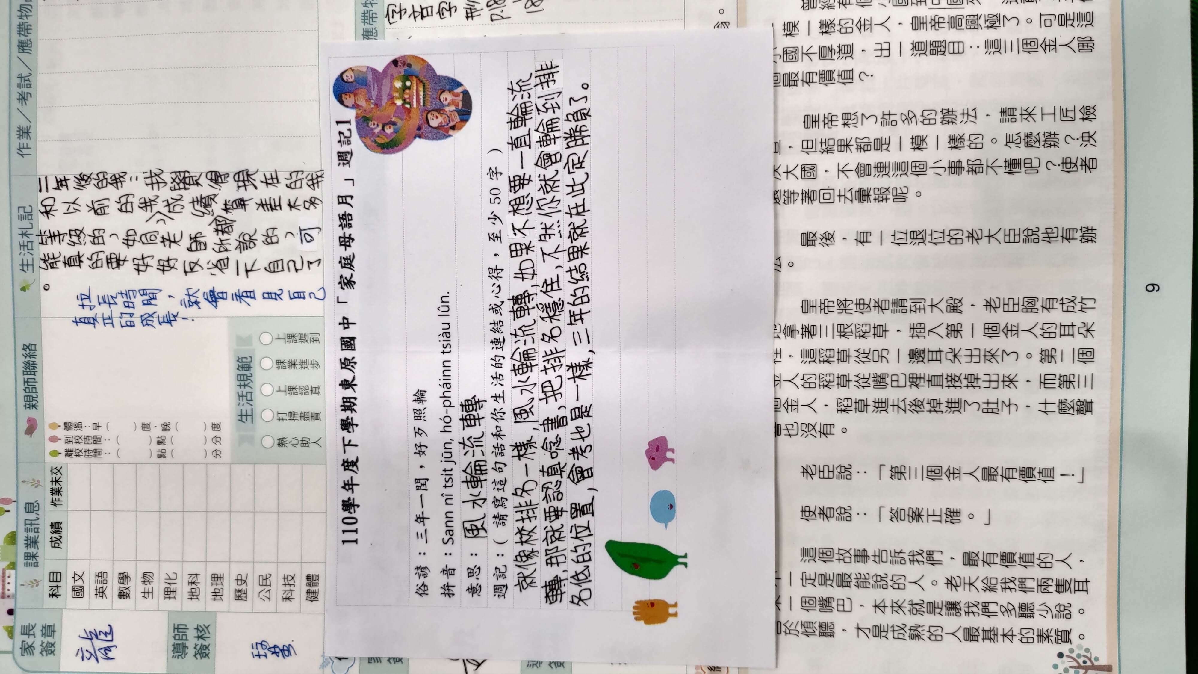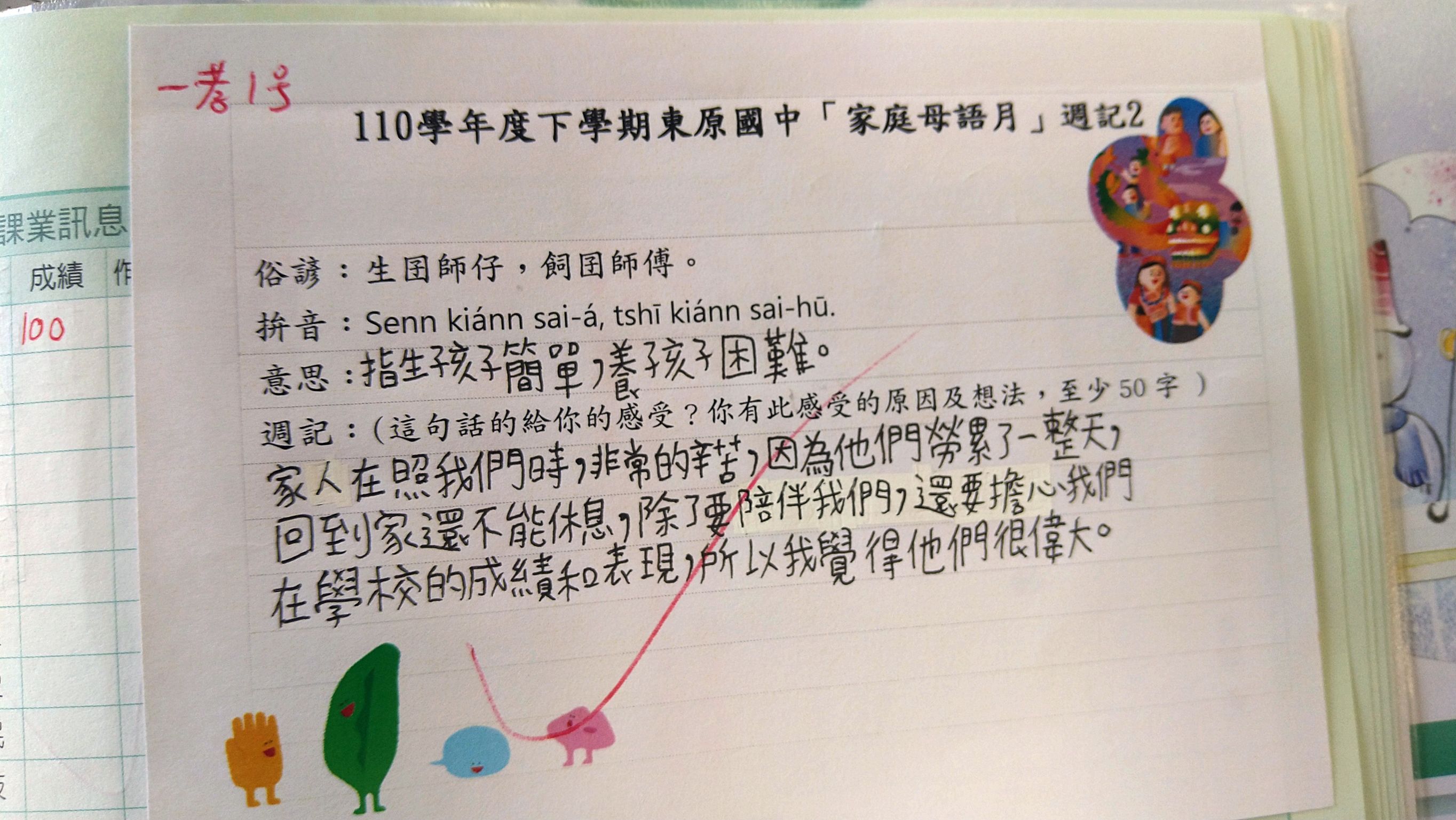 跟家長說明周三為母語日 在家也可以多多說母語