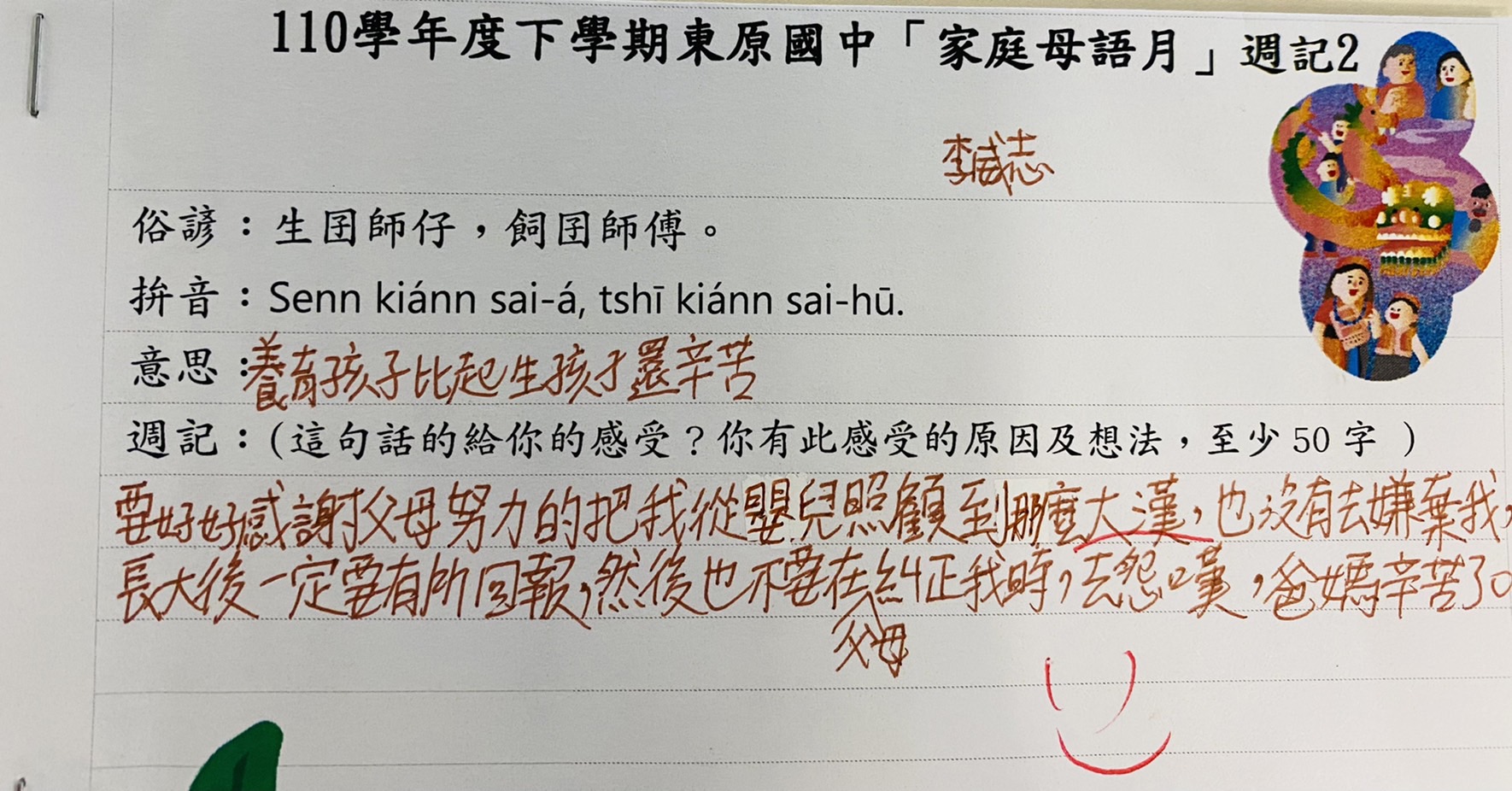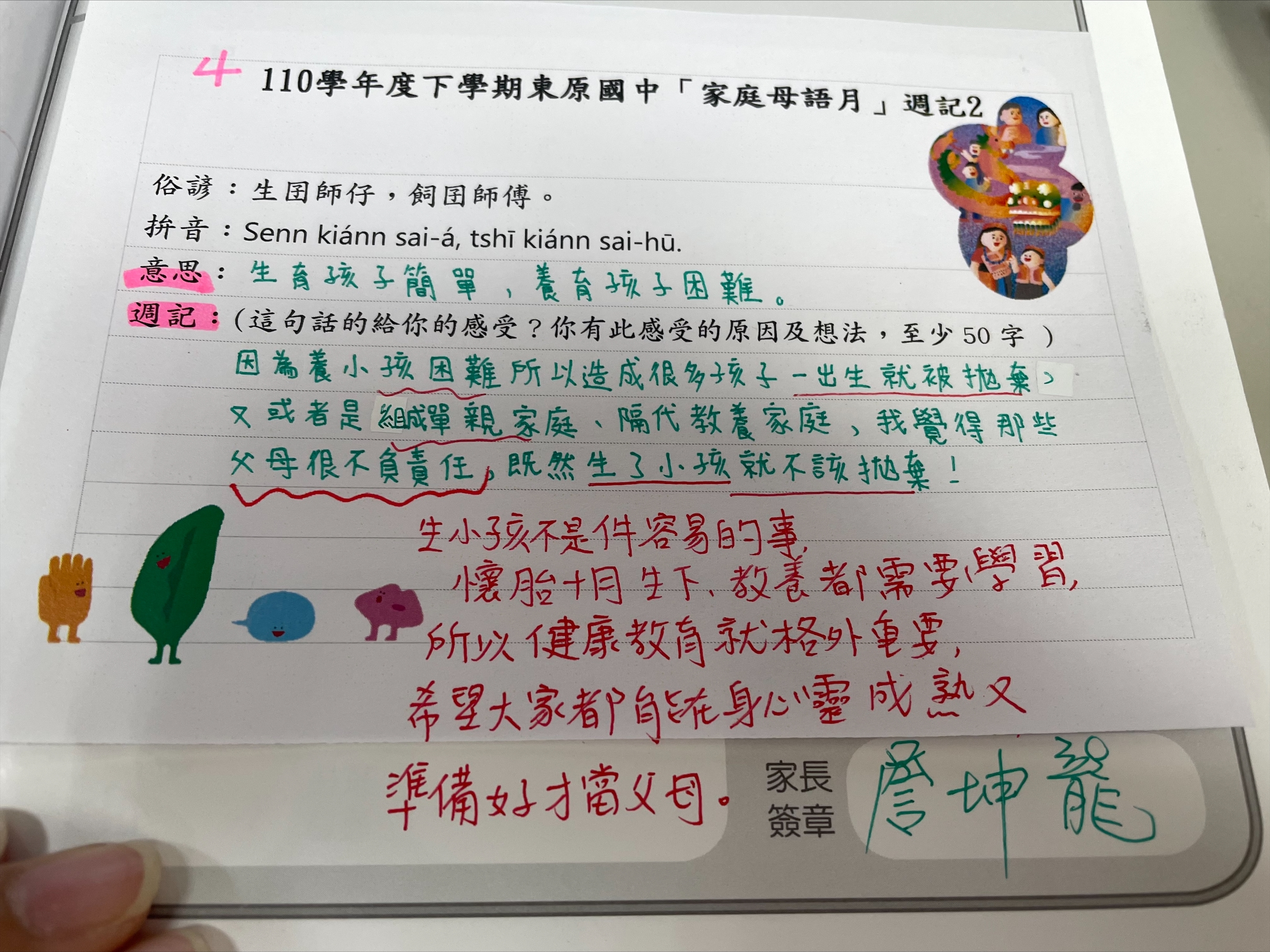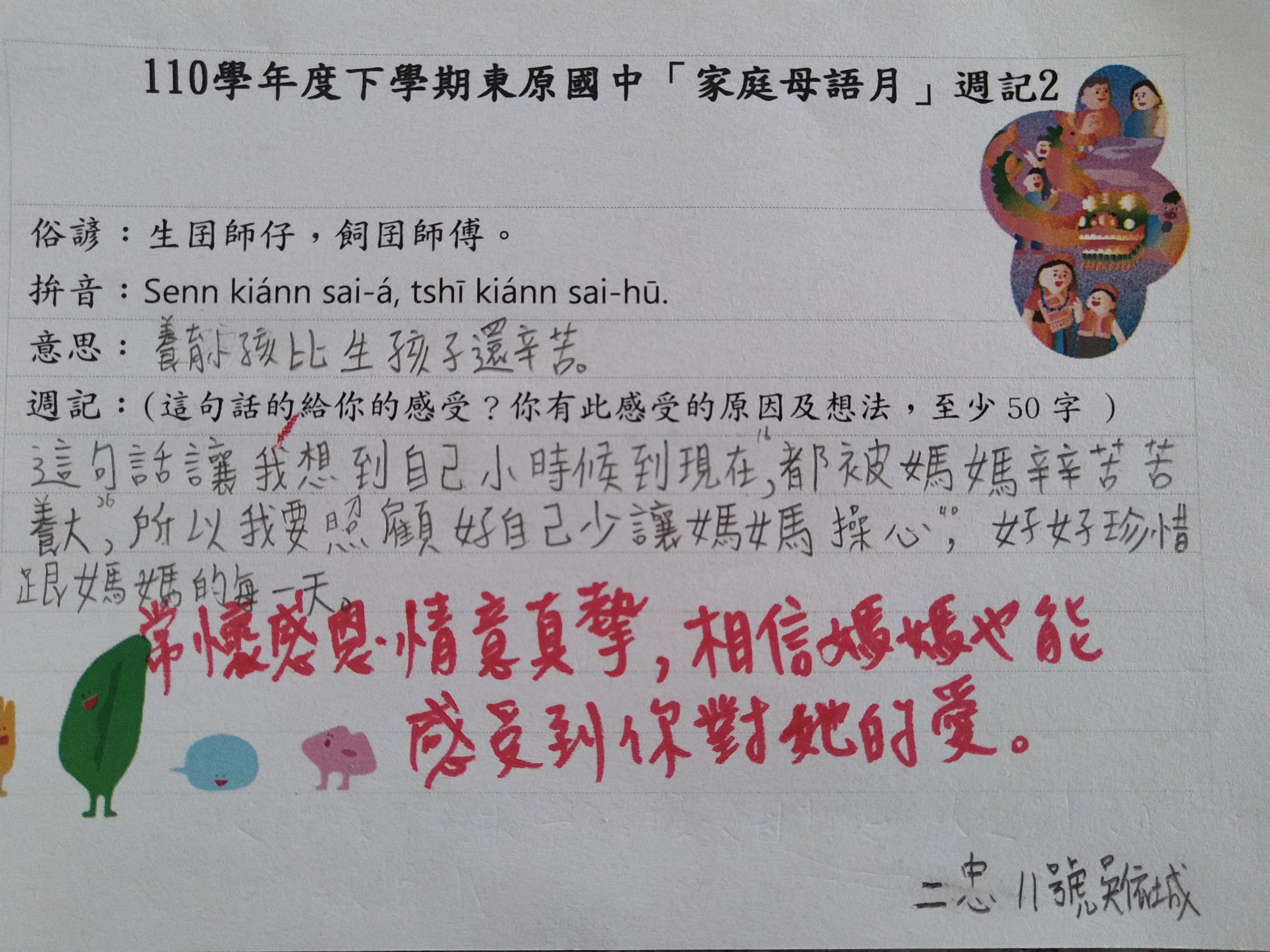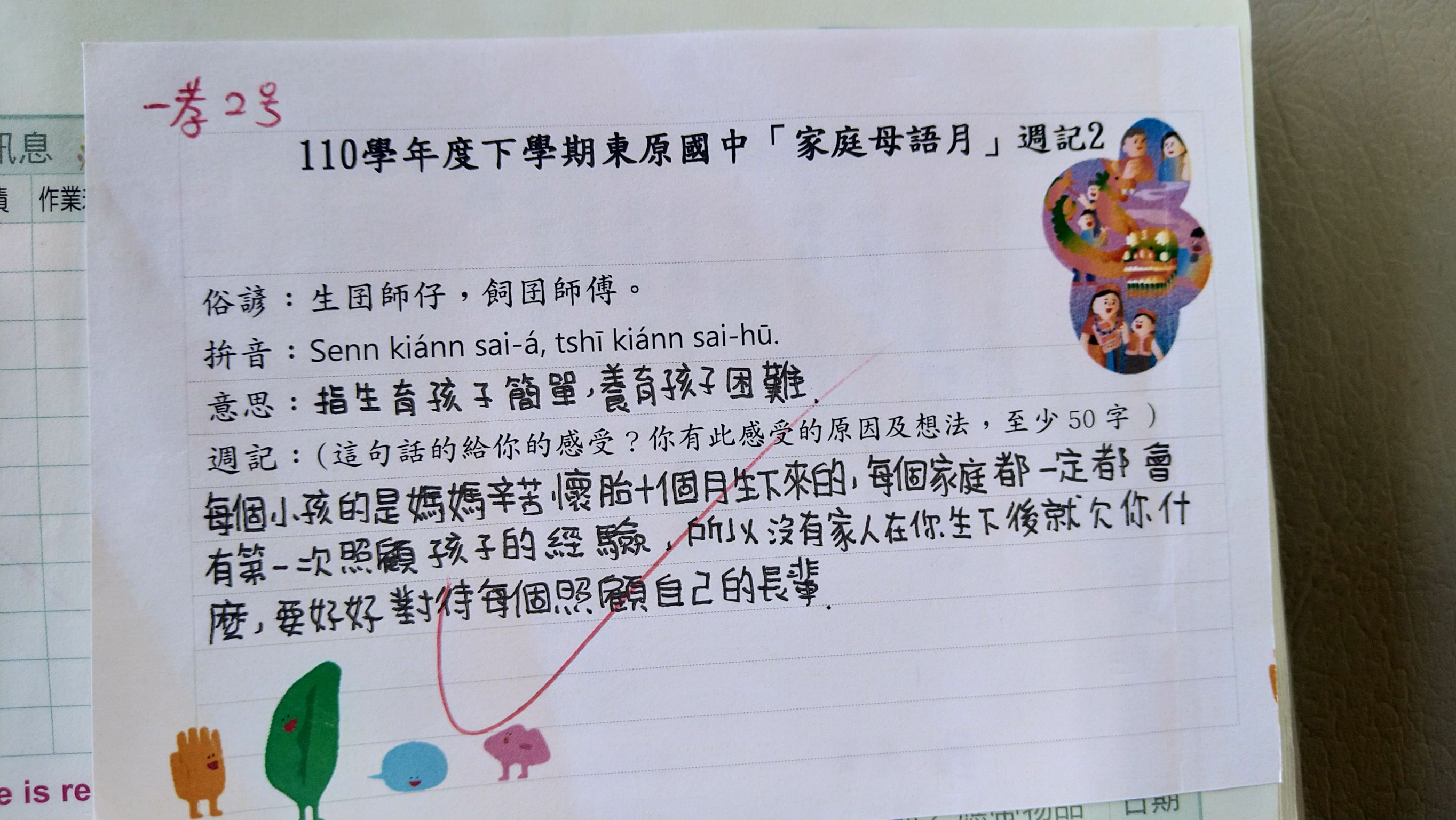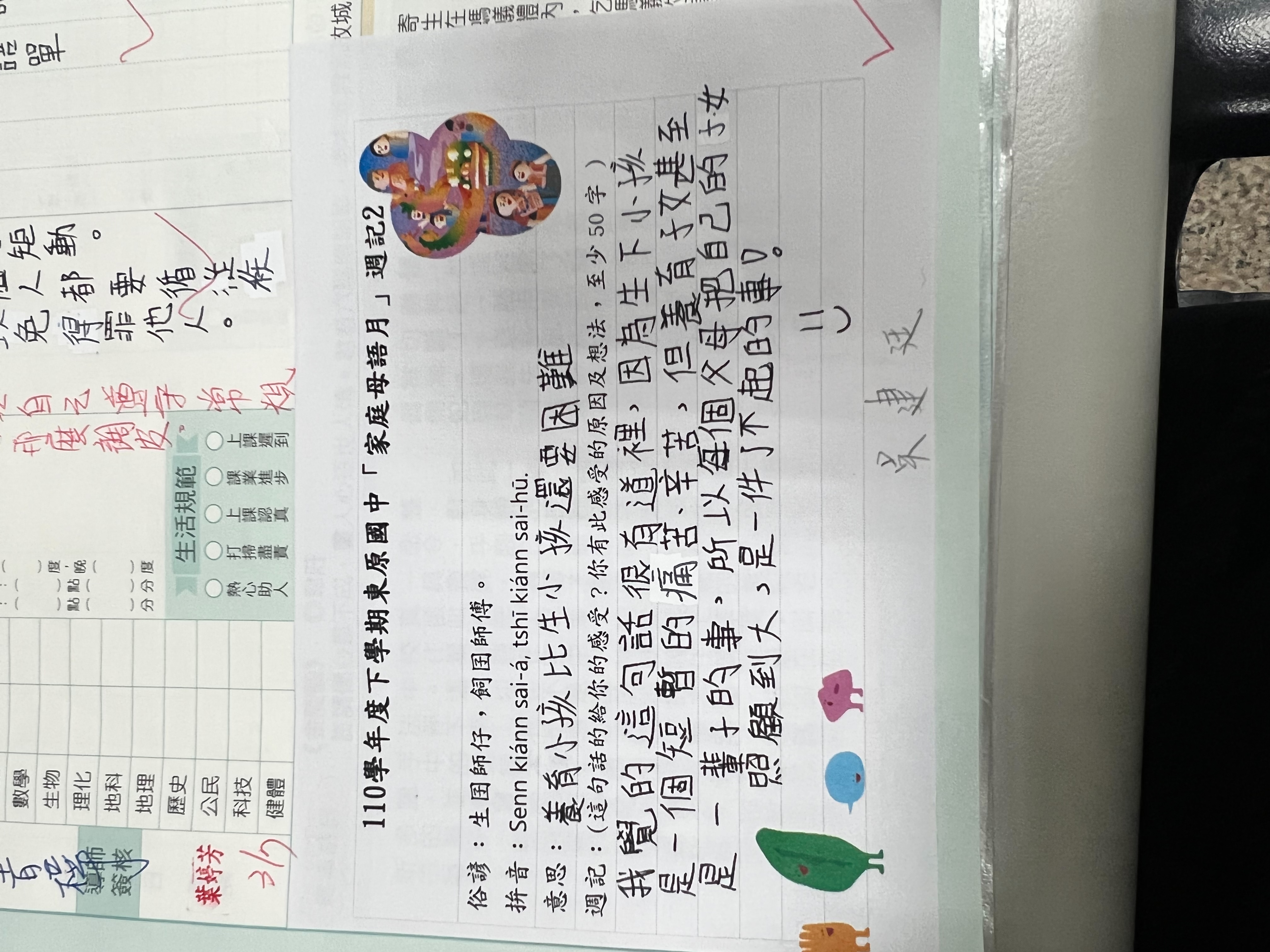跟家長說明周三為母語日 在家也可以多多說母語