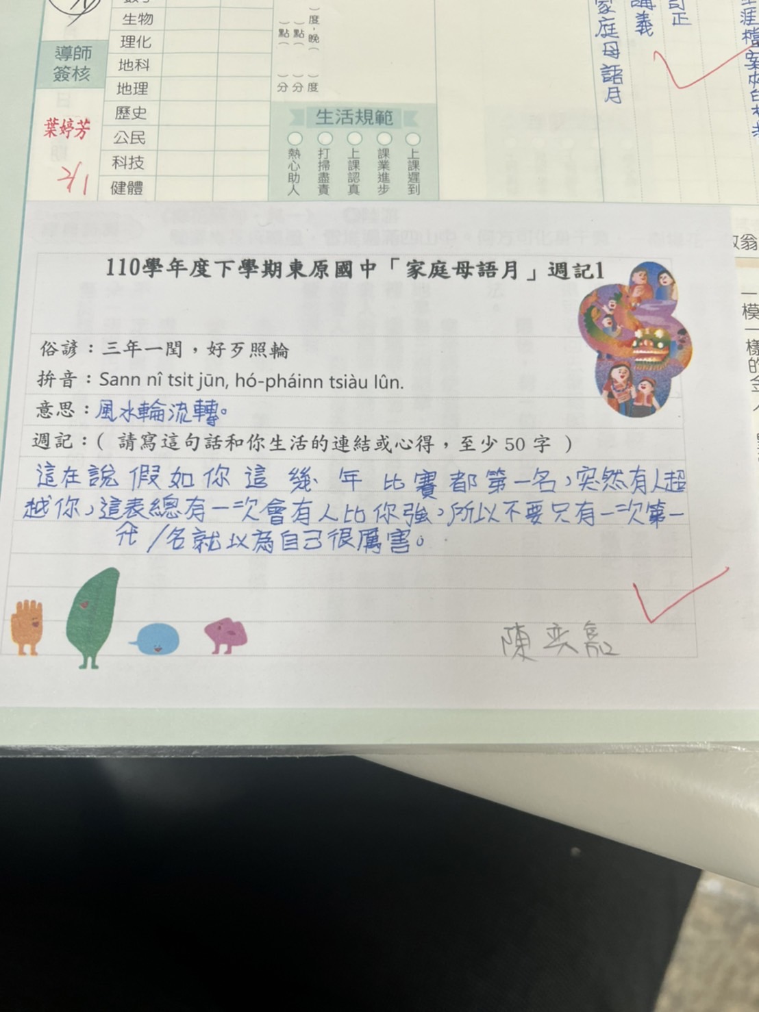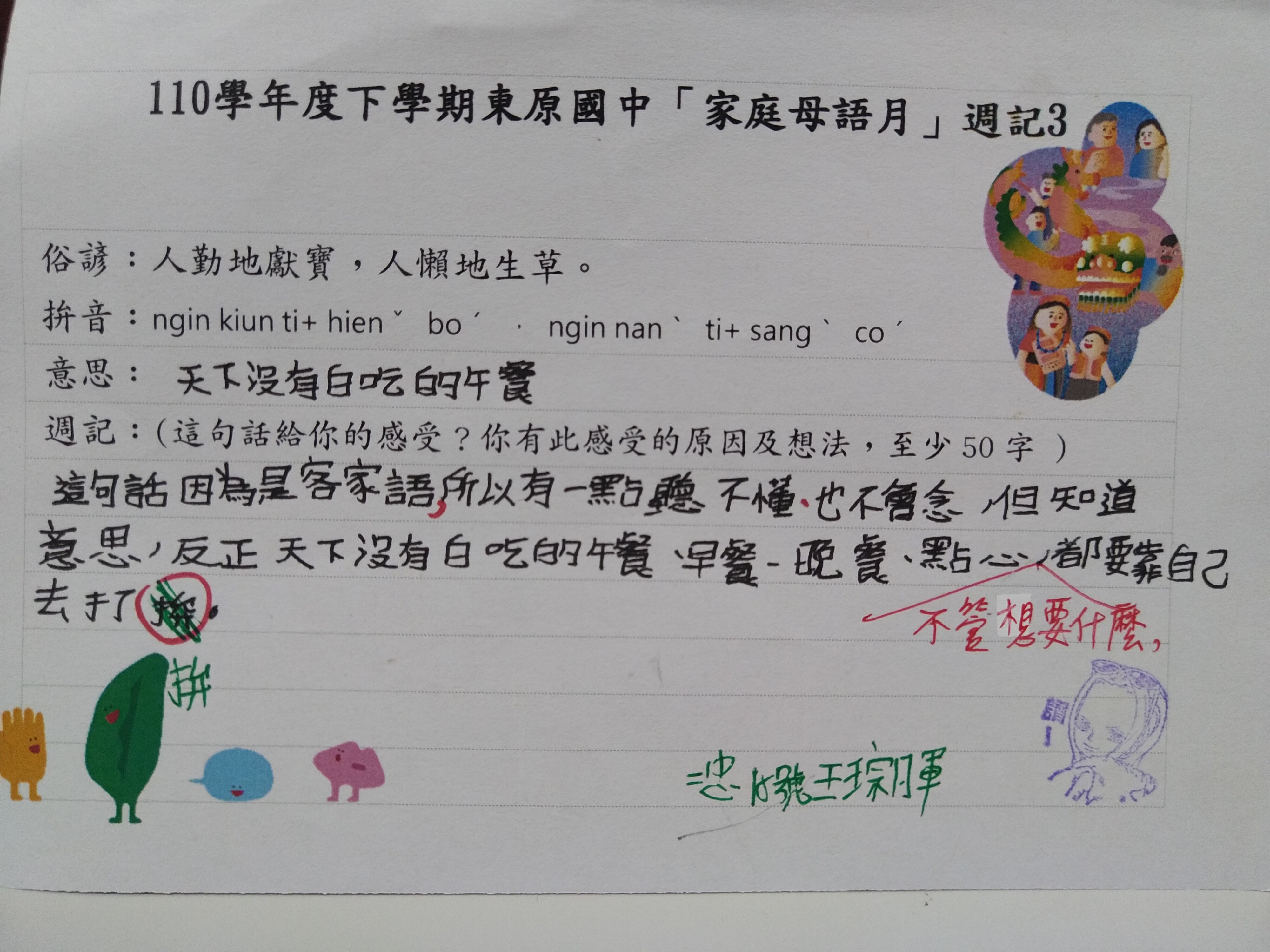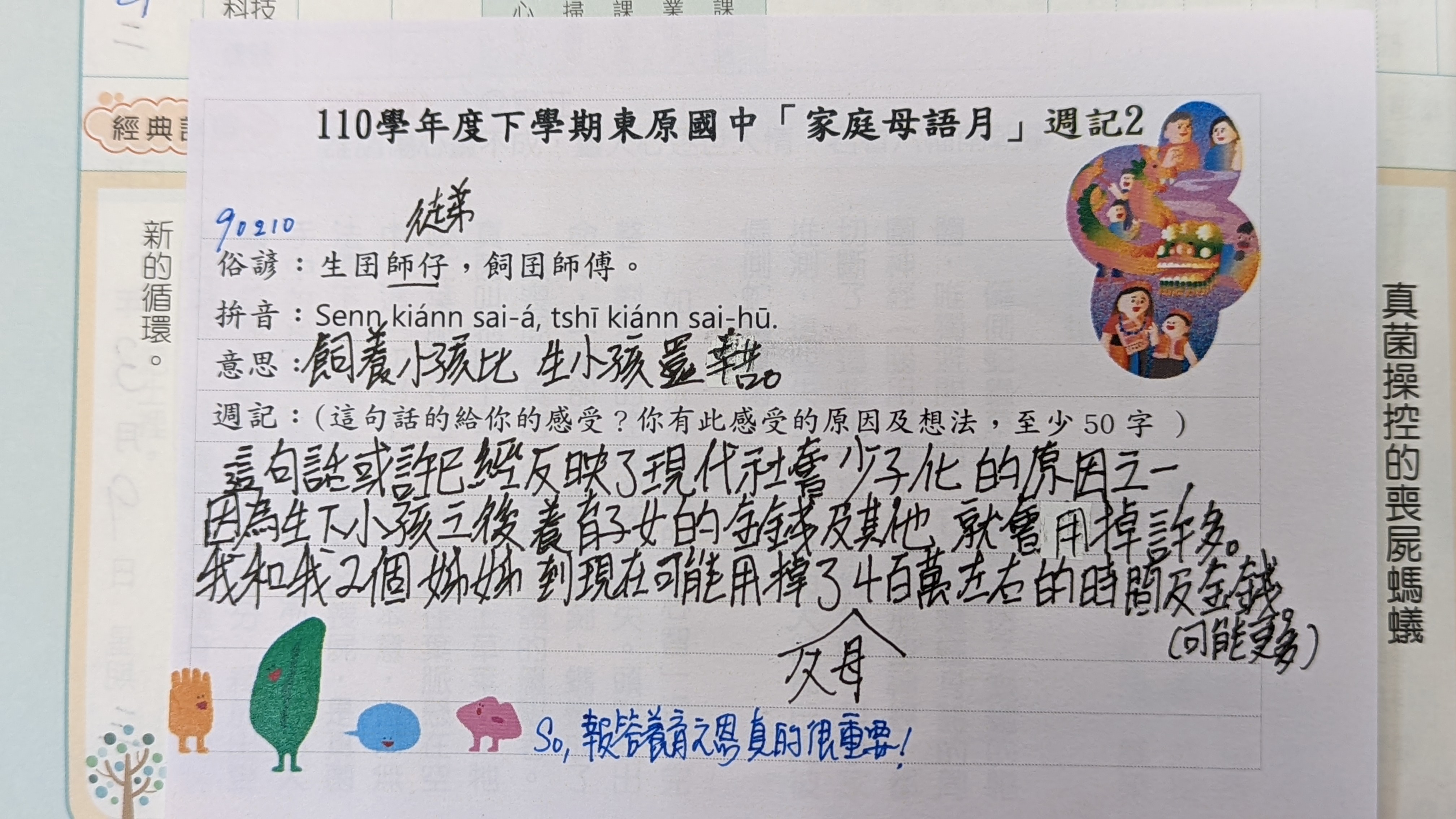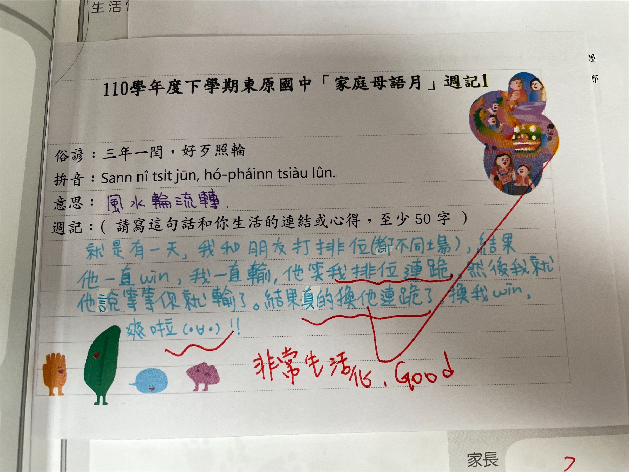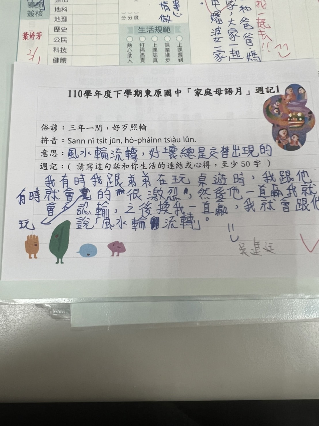 跟家長說明周三為母語日 在家也可以多多說母語