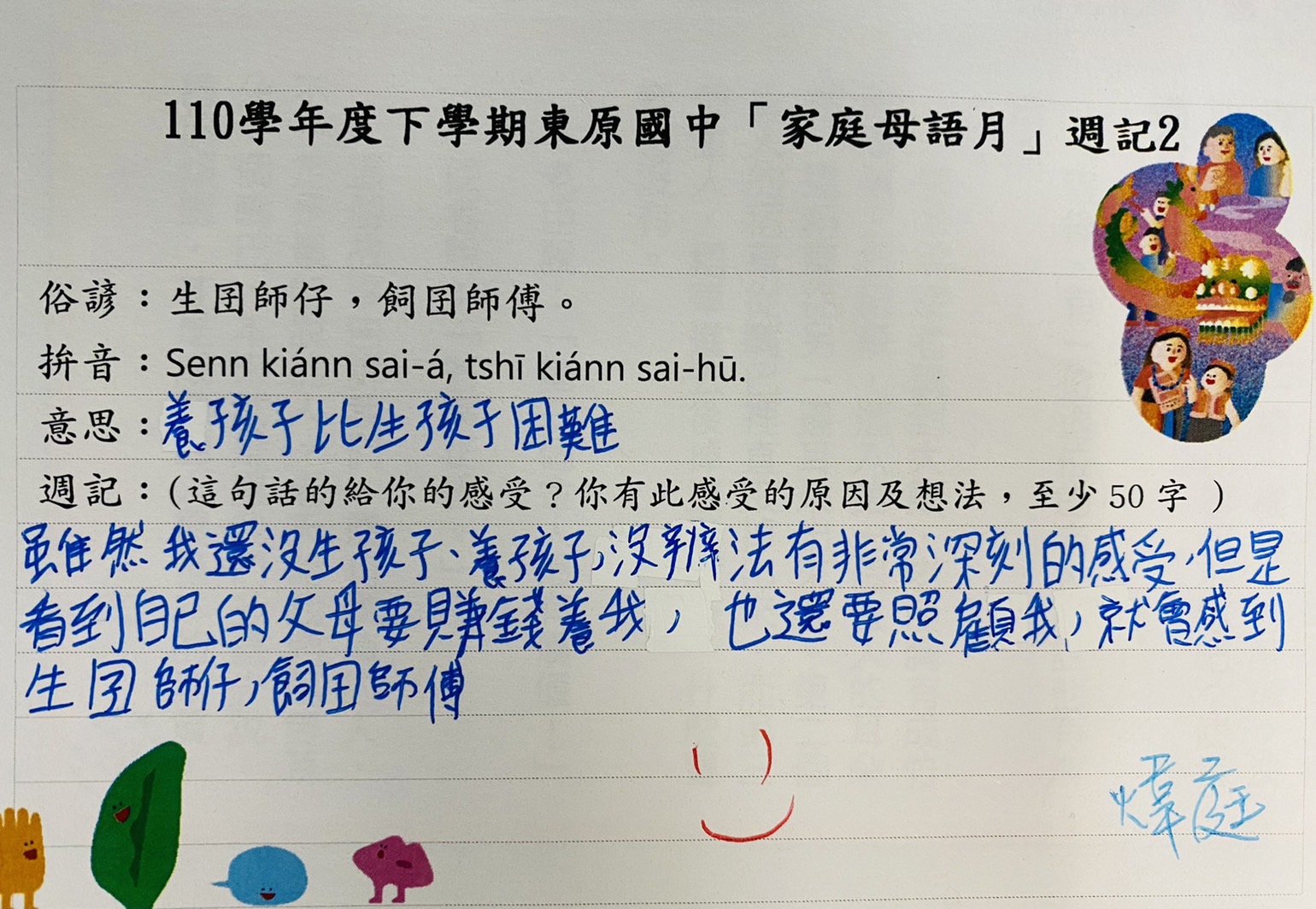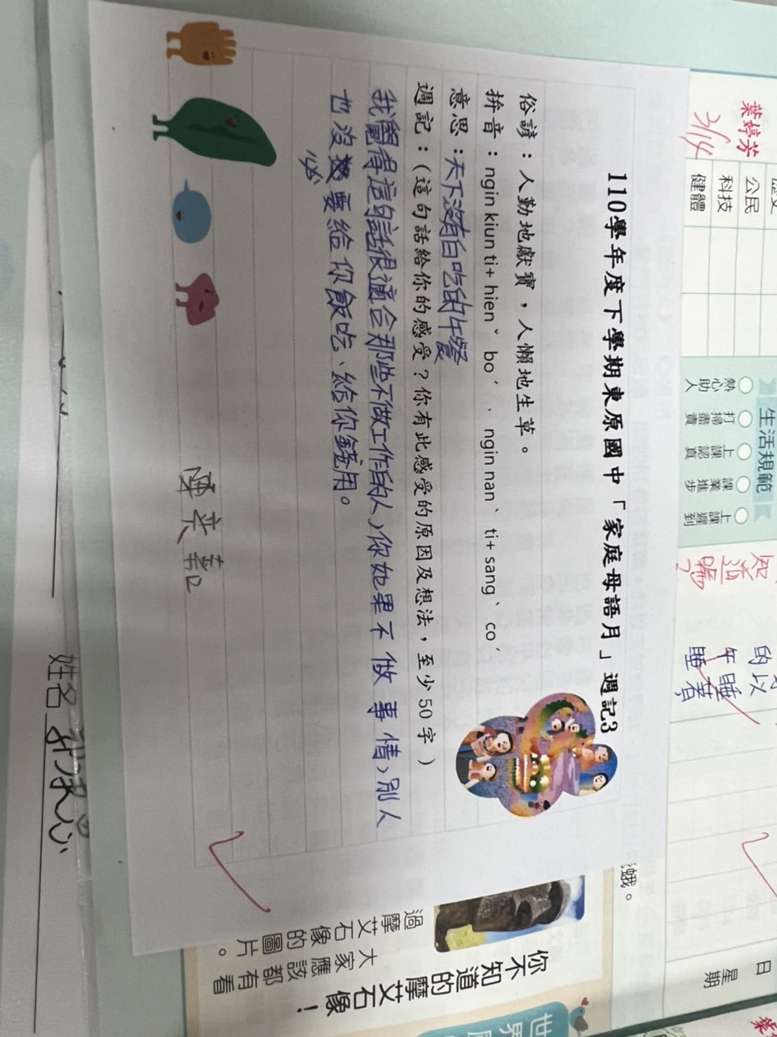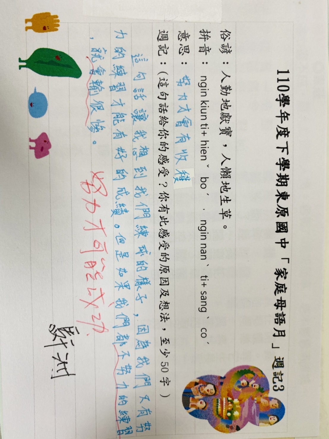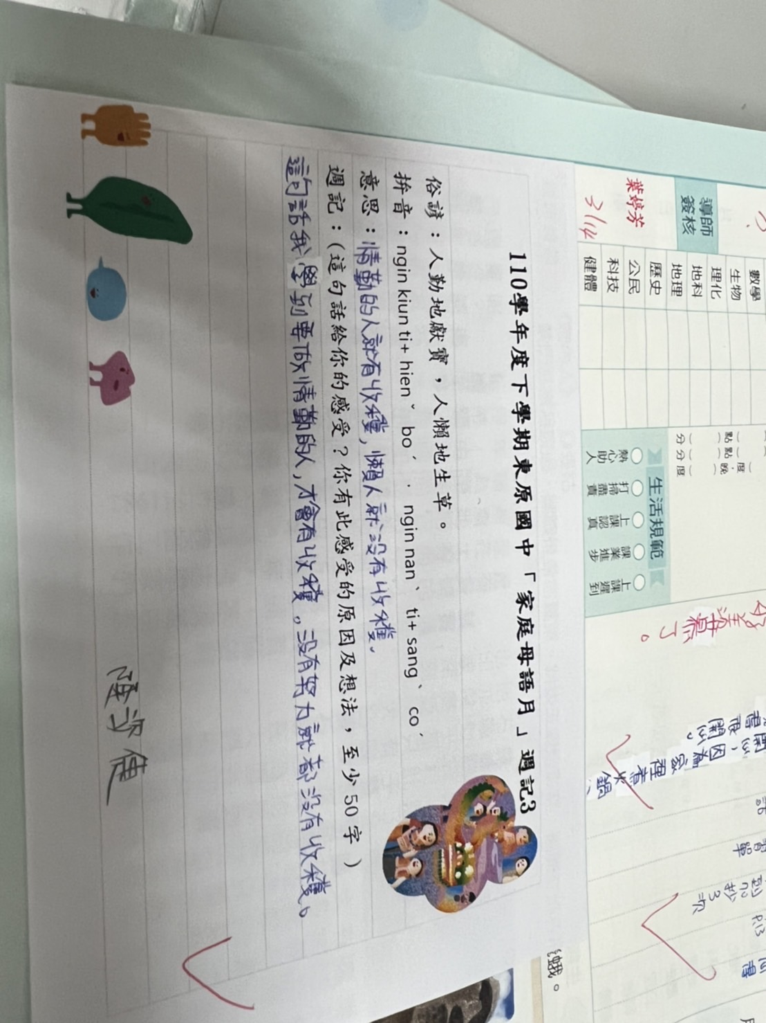 跟家長說明周三為母語日 在家也可以多多說母語