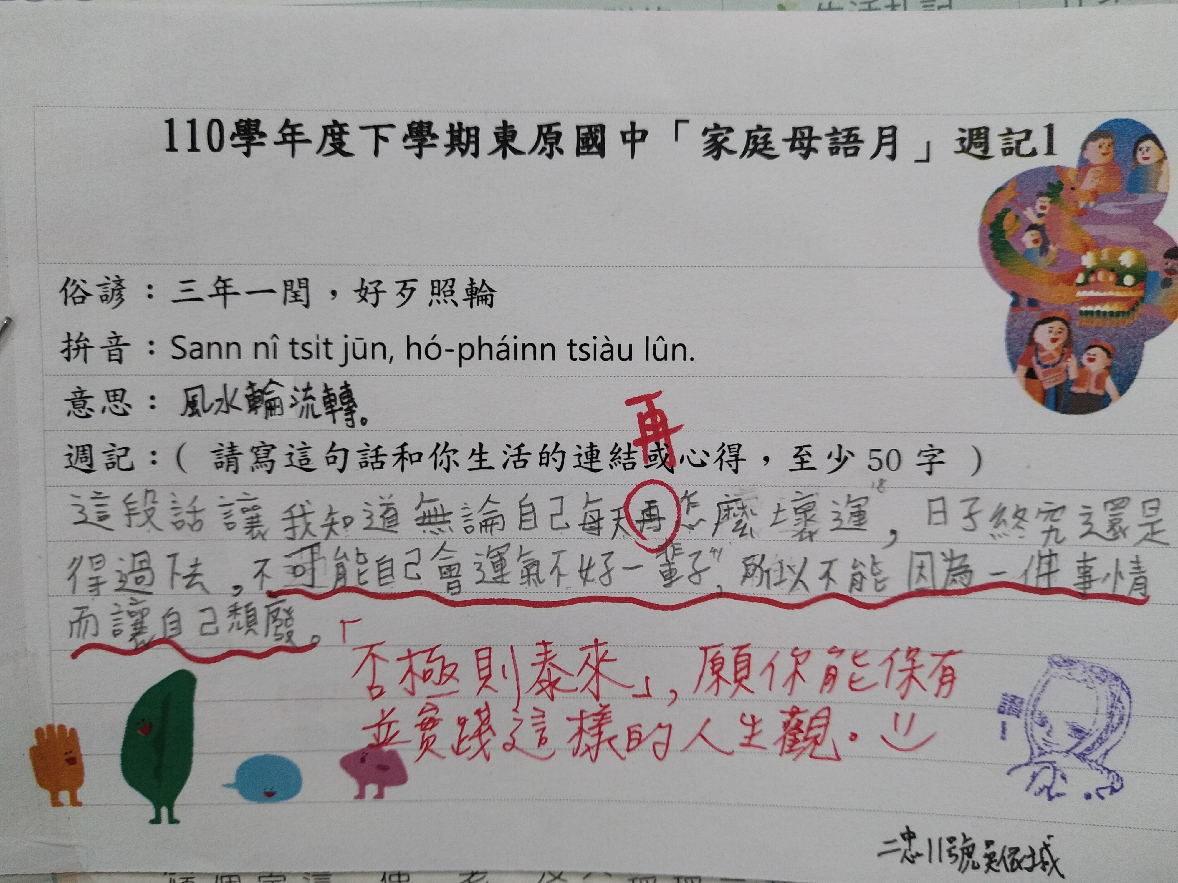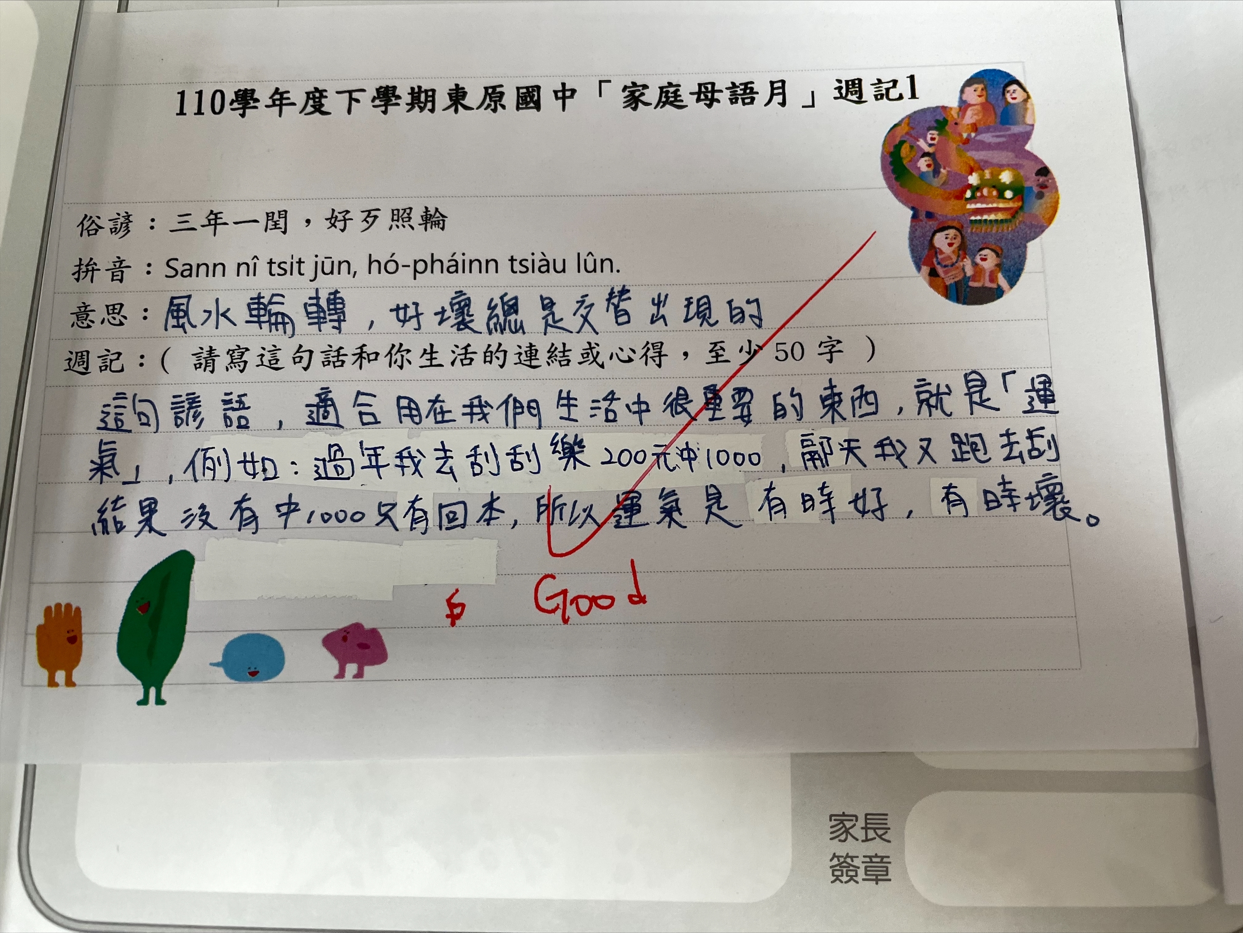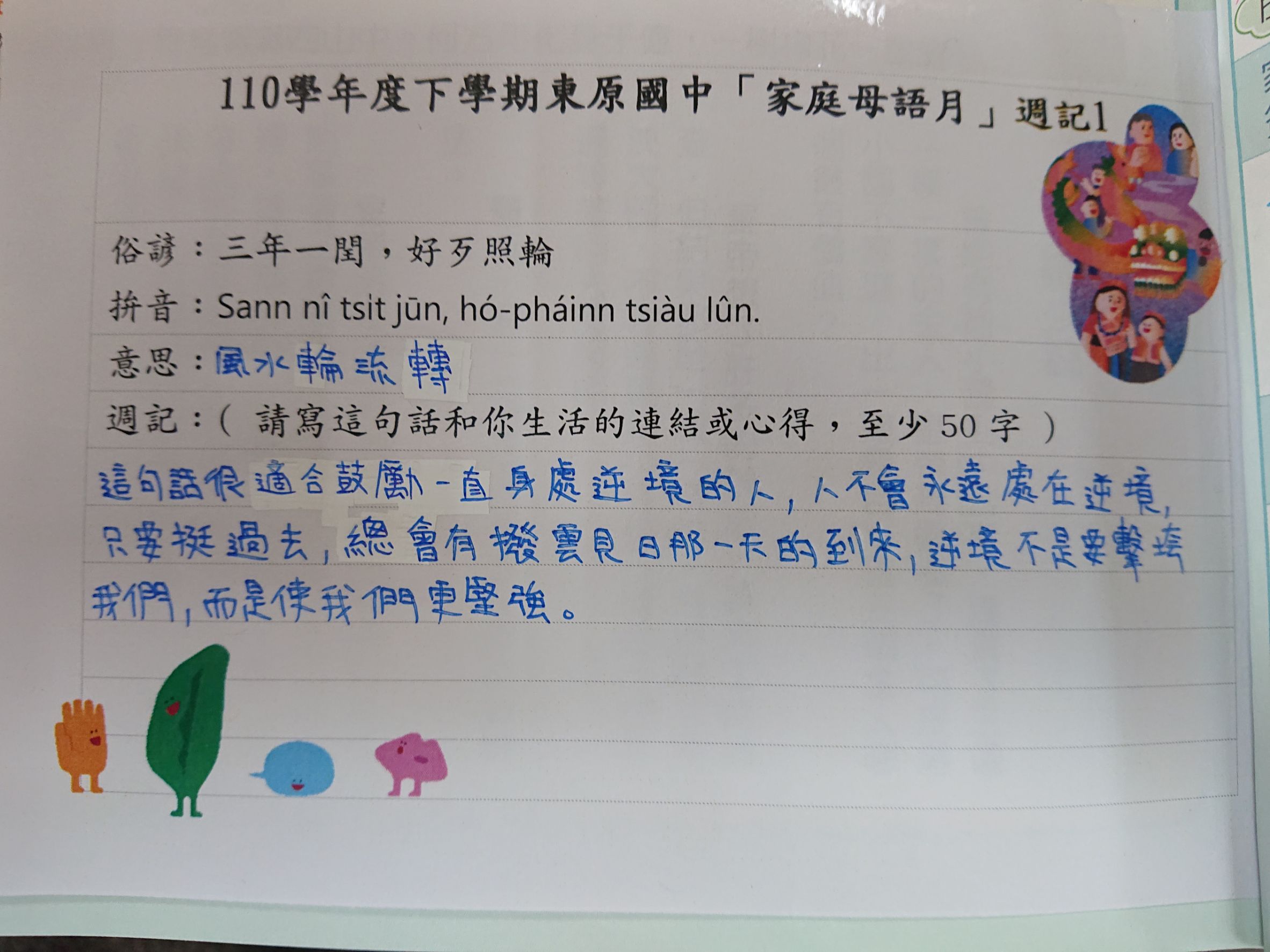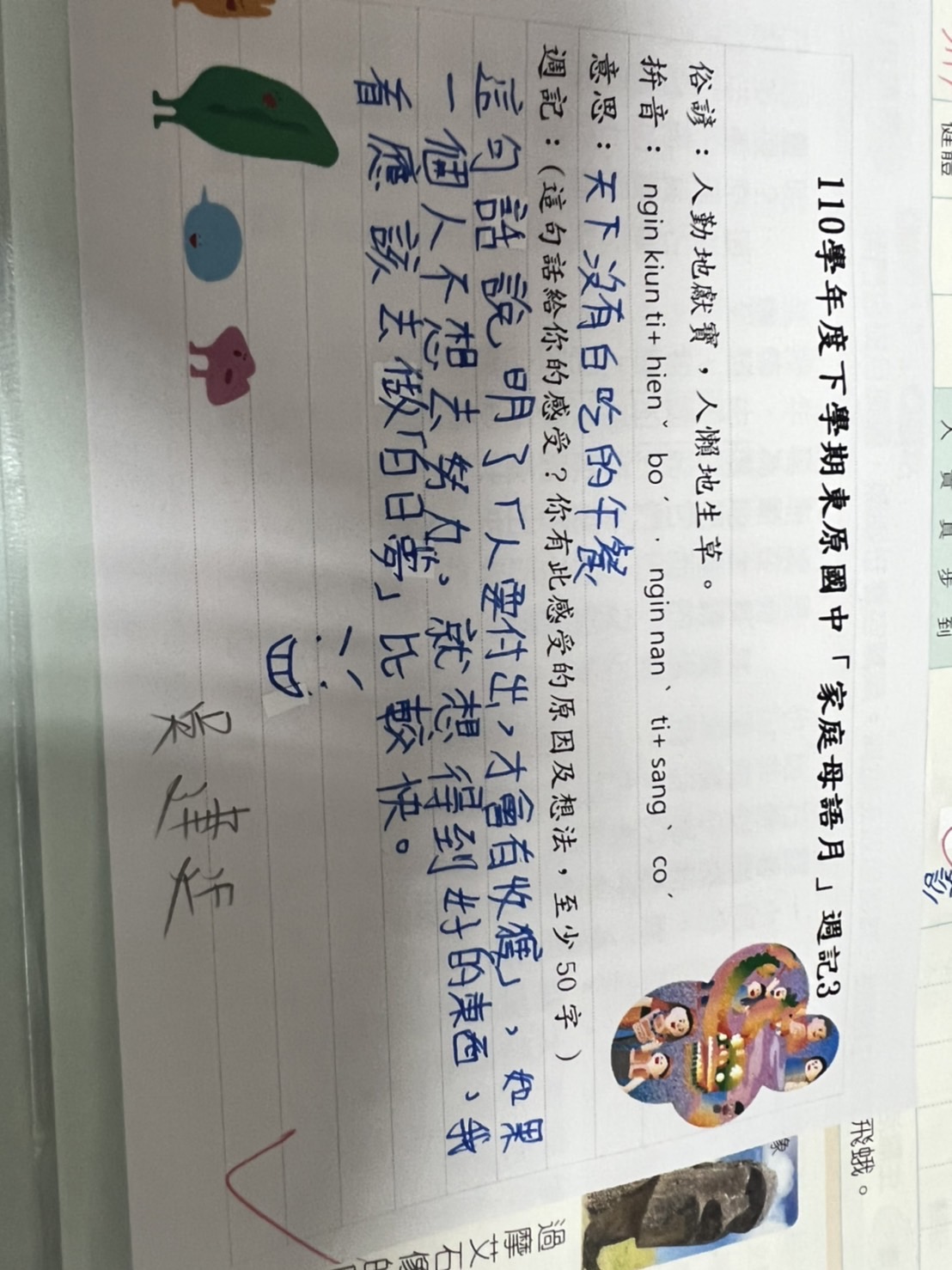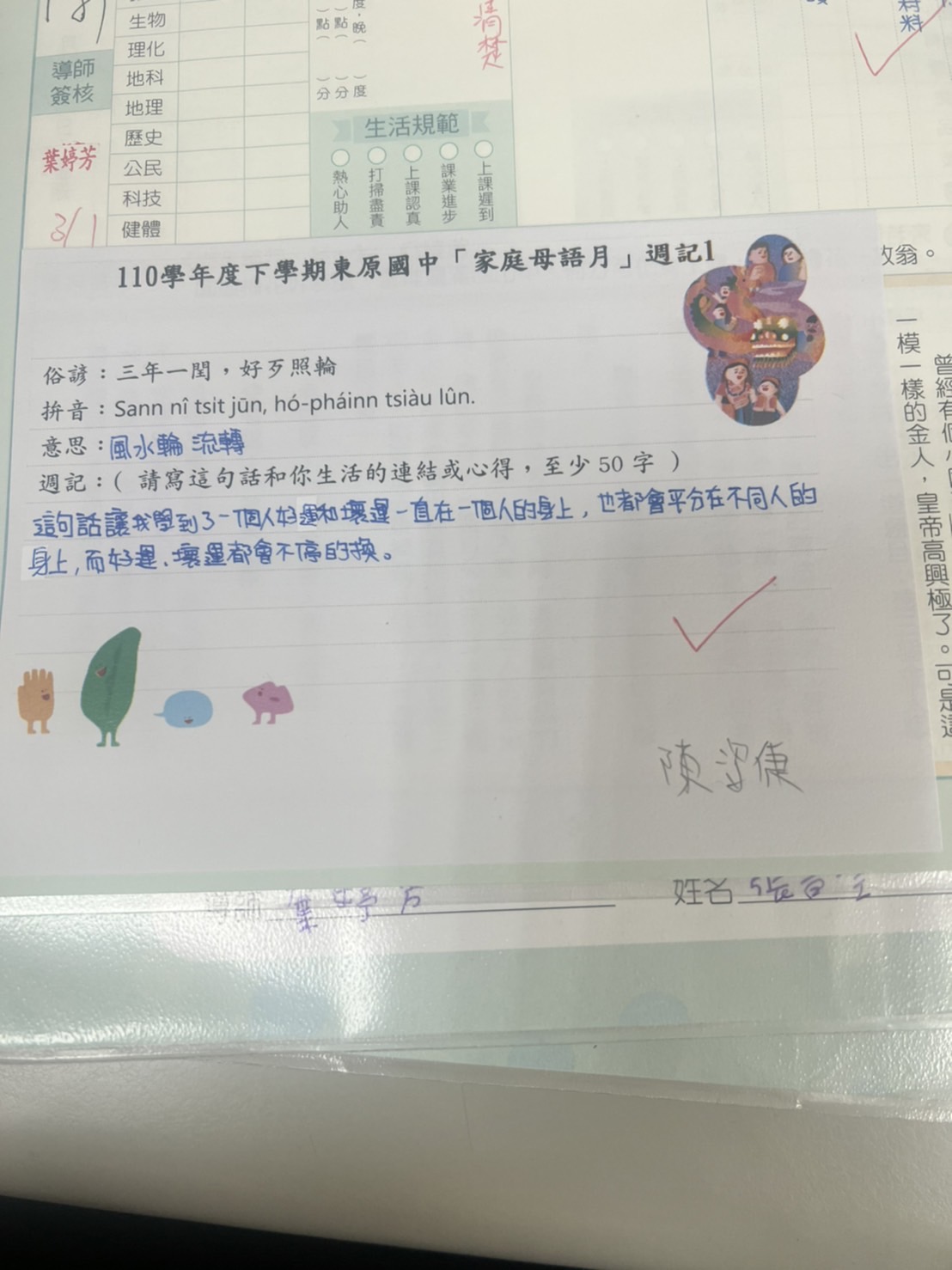 跟家長說明周三為母語日 在家也可以多多說母語