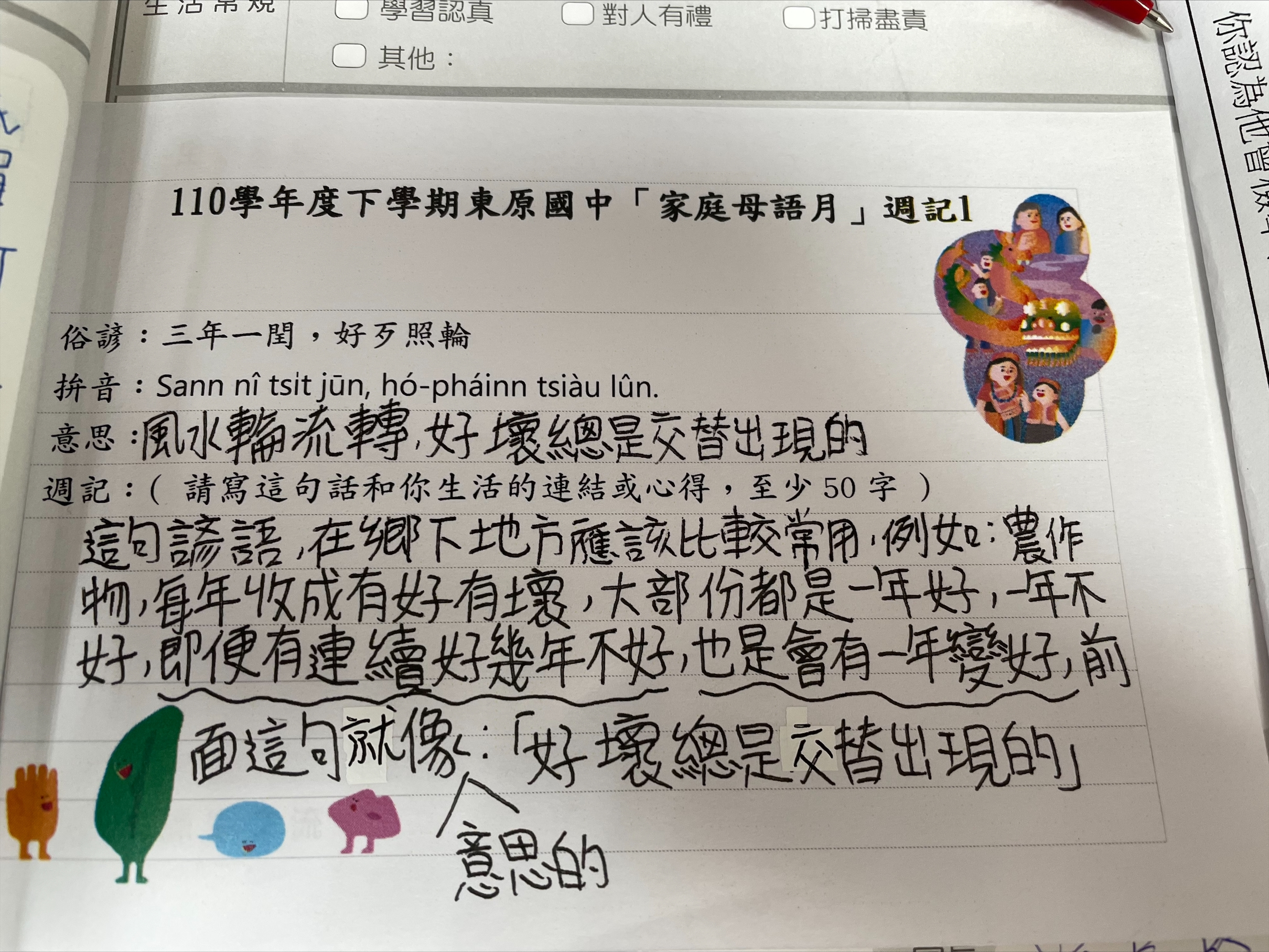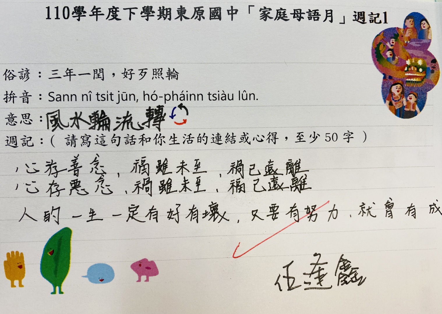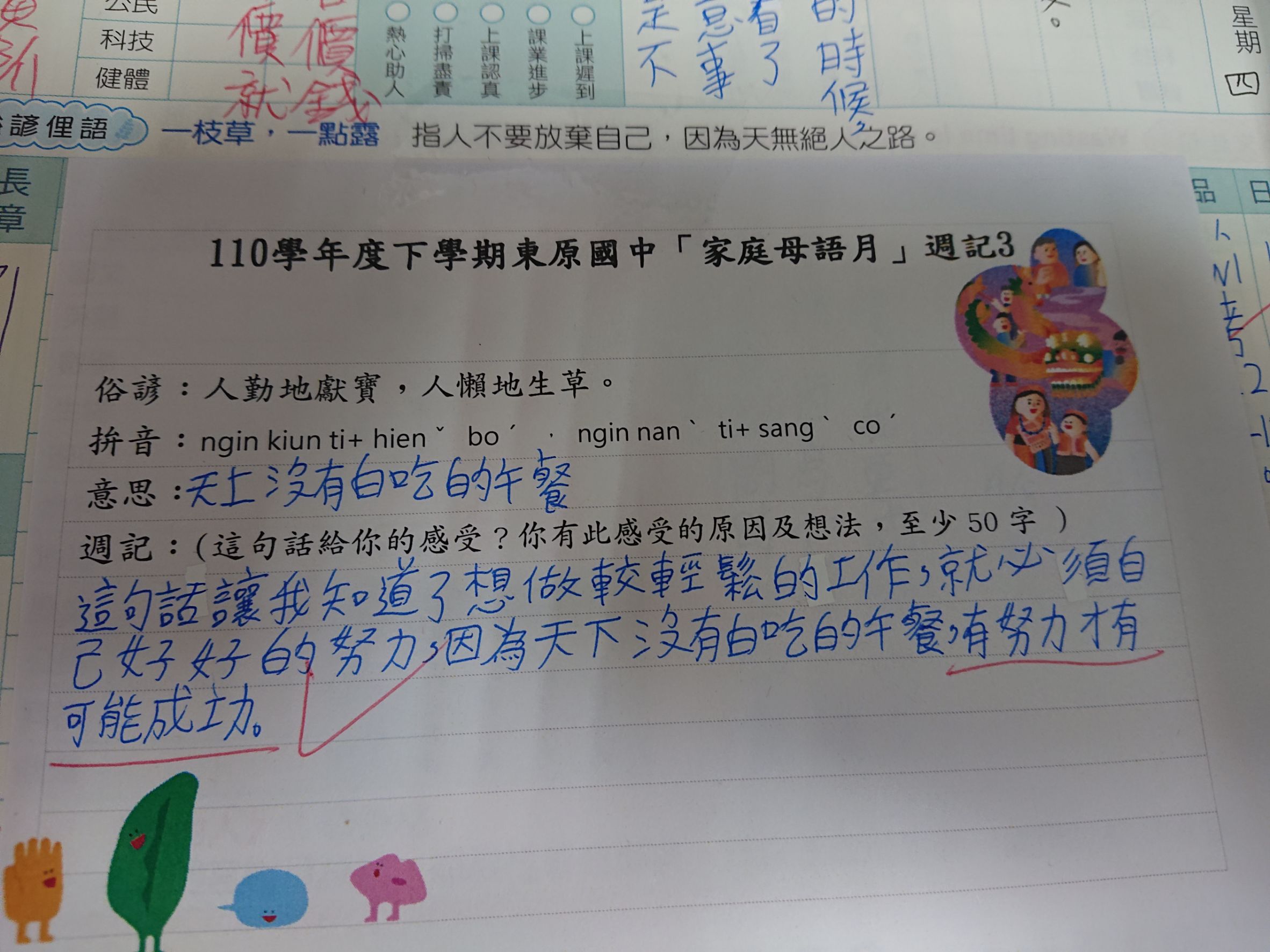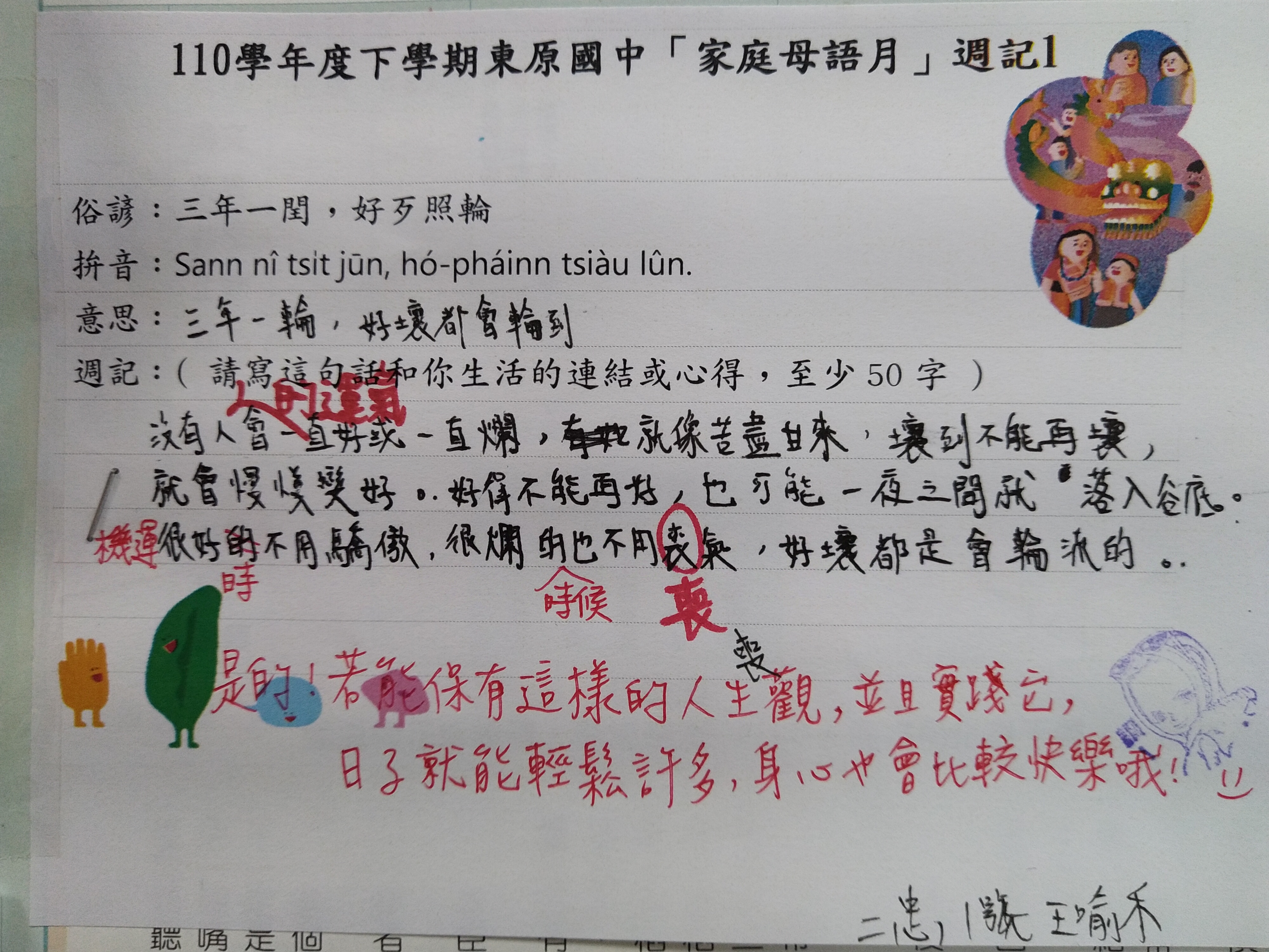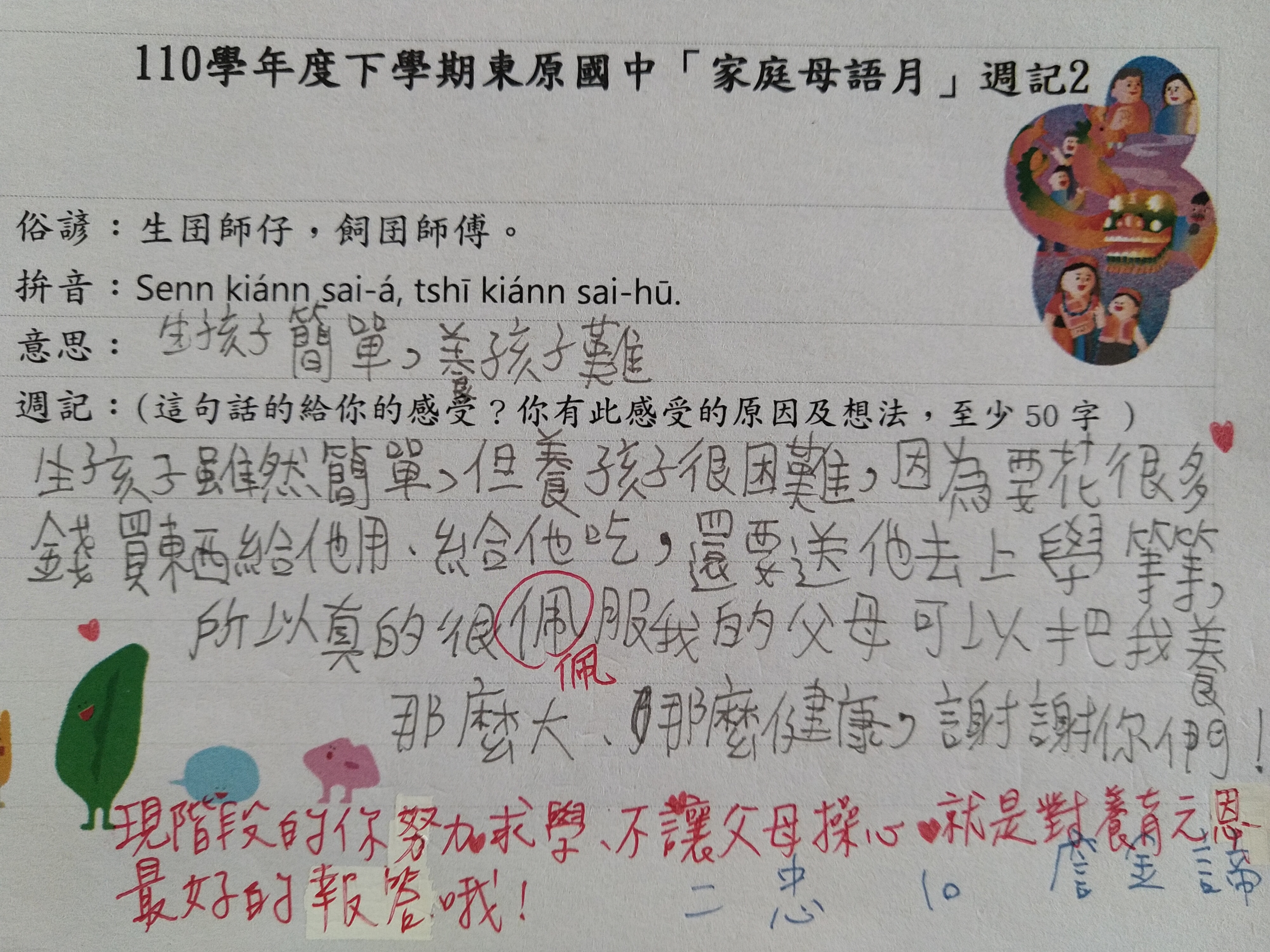 跟家長說明周三為母語日 在家也可以多多說母語