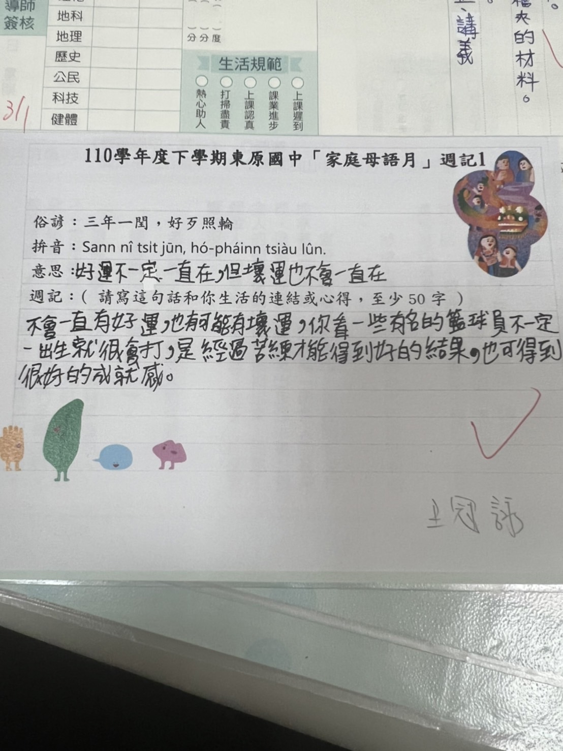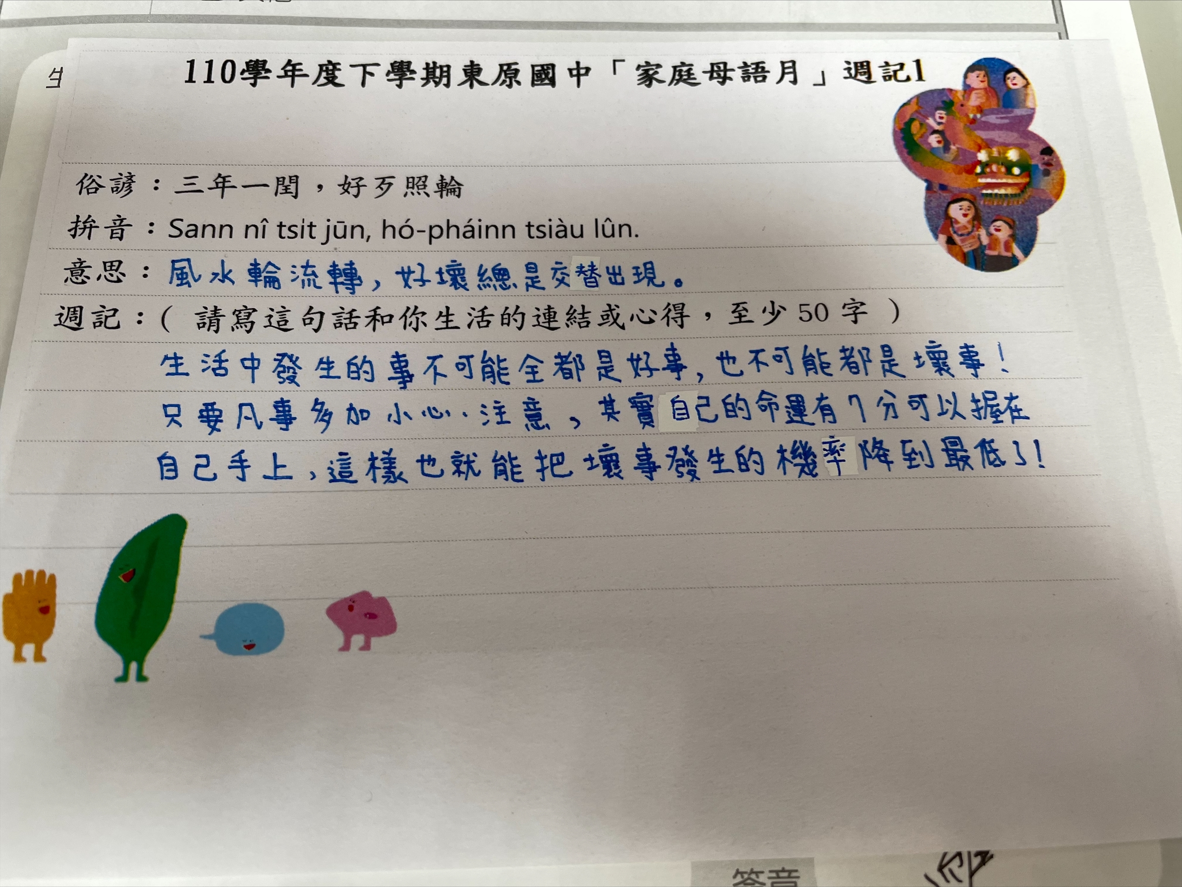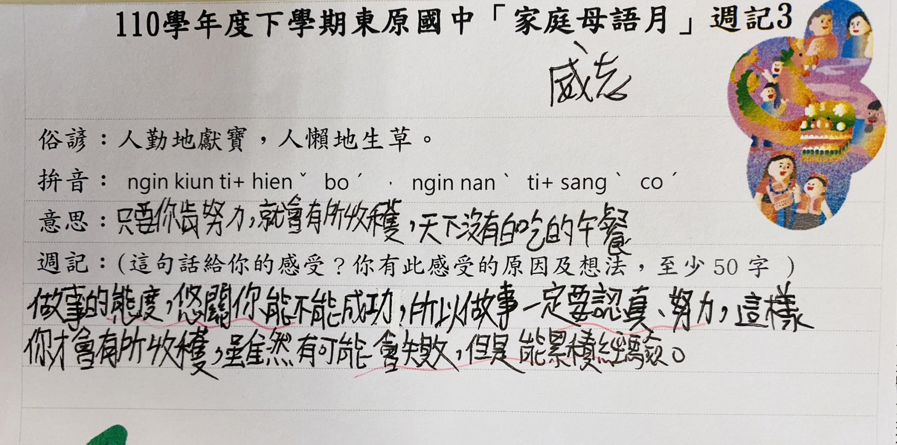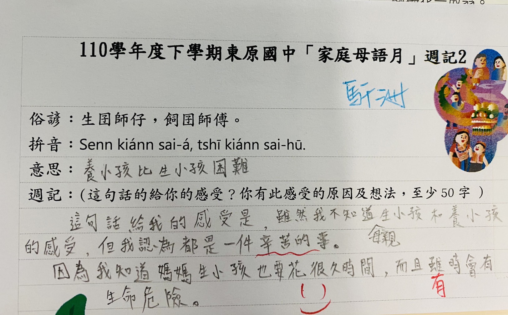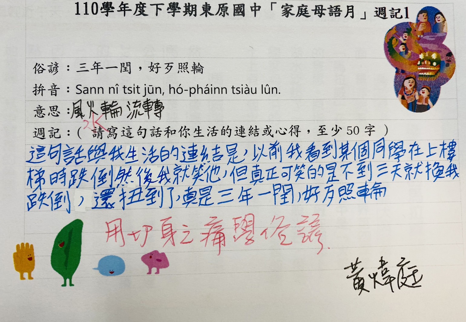 跟家長說明周三為母語日 在家也可以多多說母語