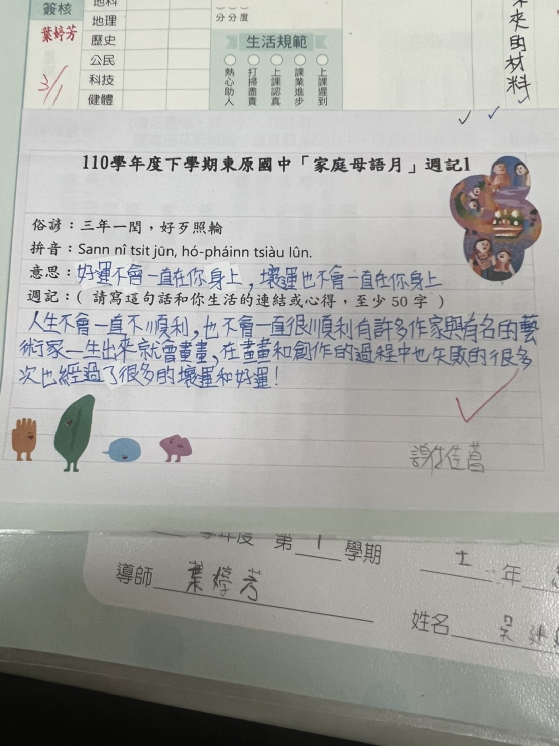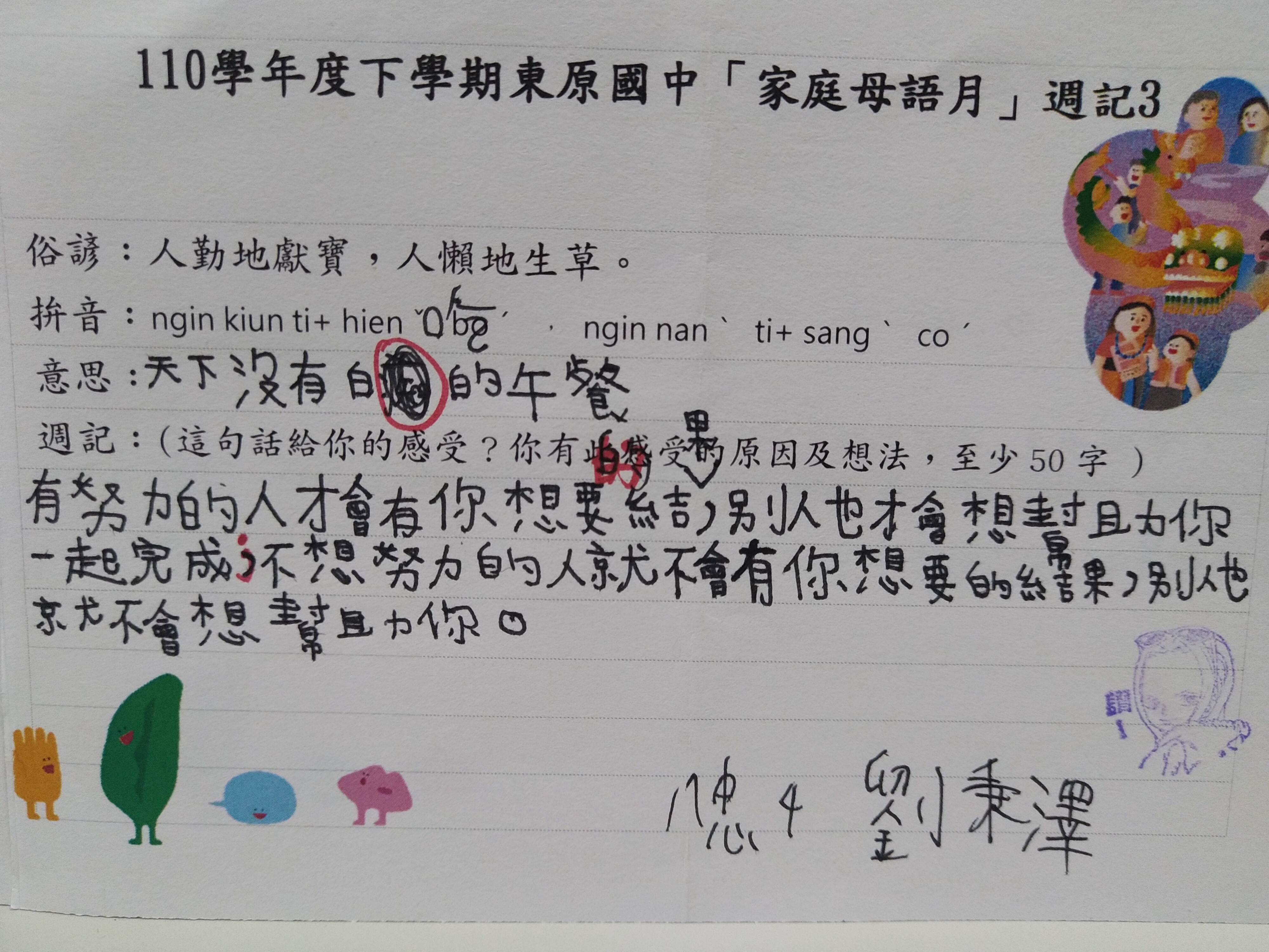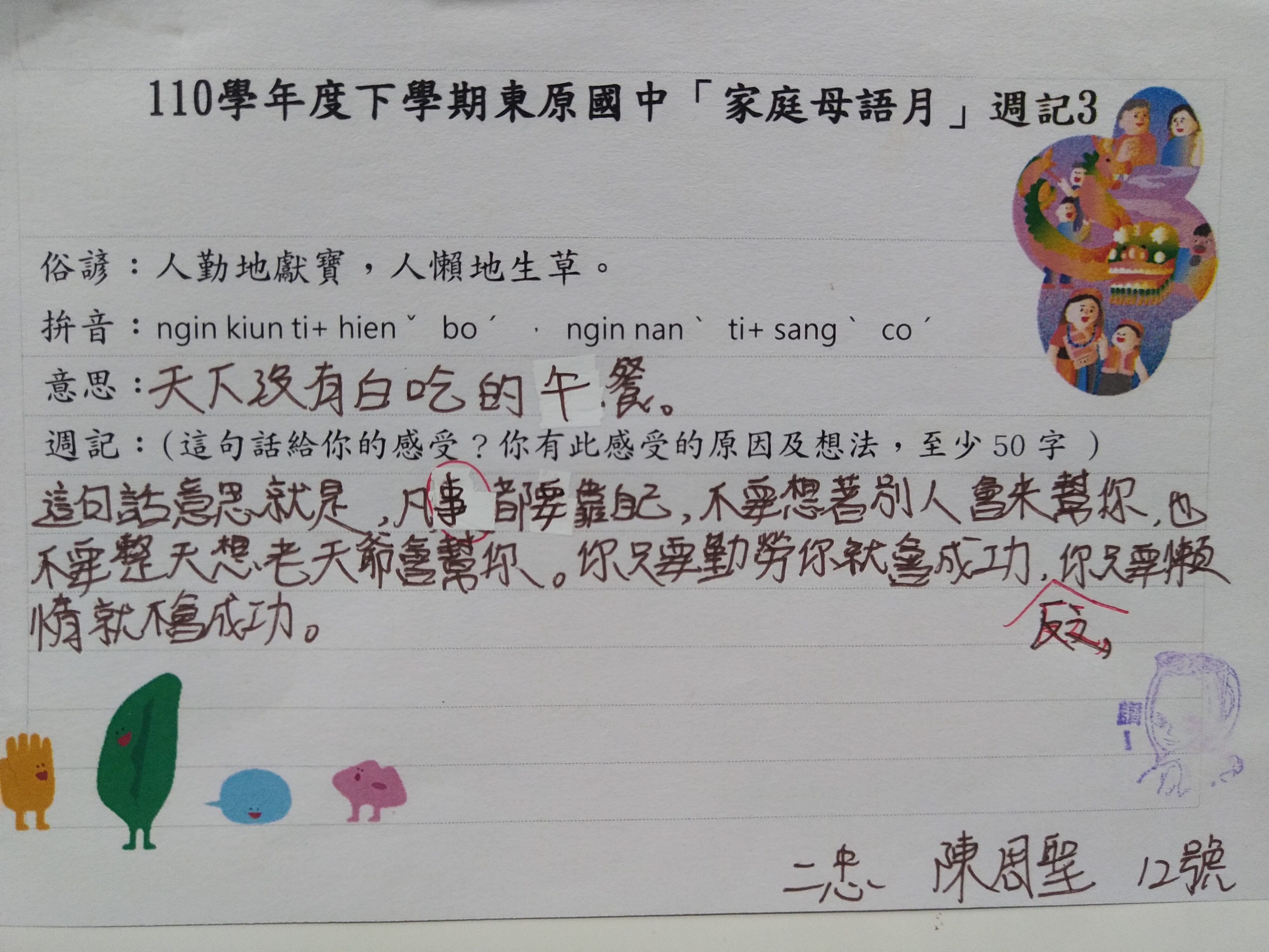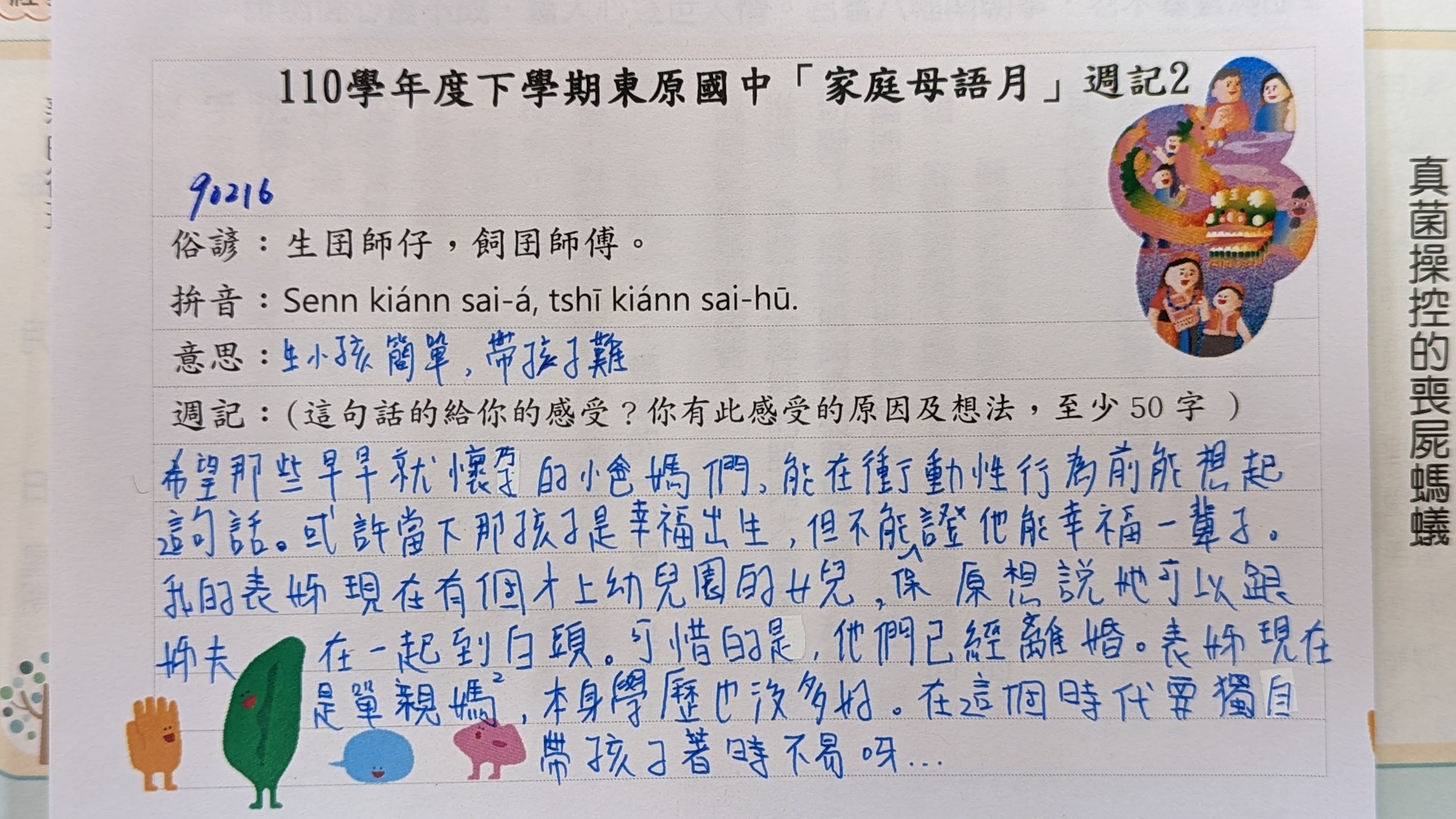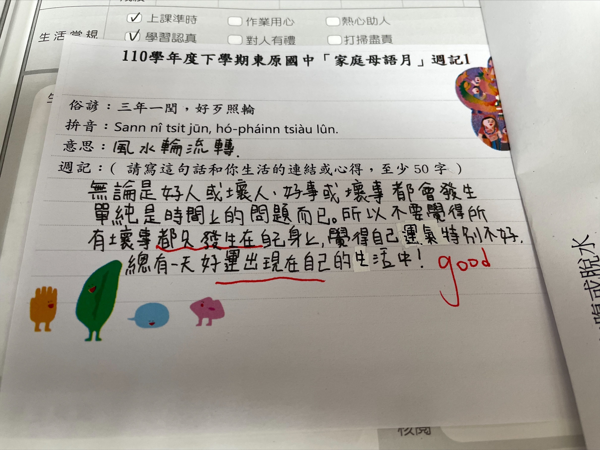 跟家長說明周三為母語日 在家也可以多多說母語