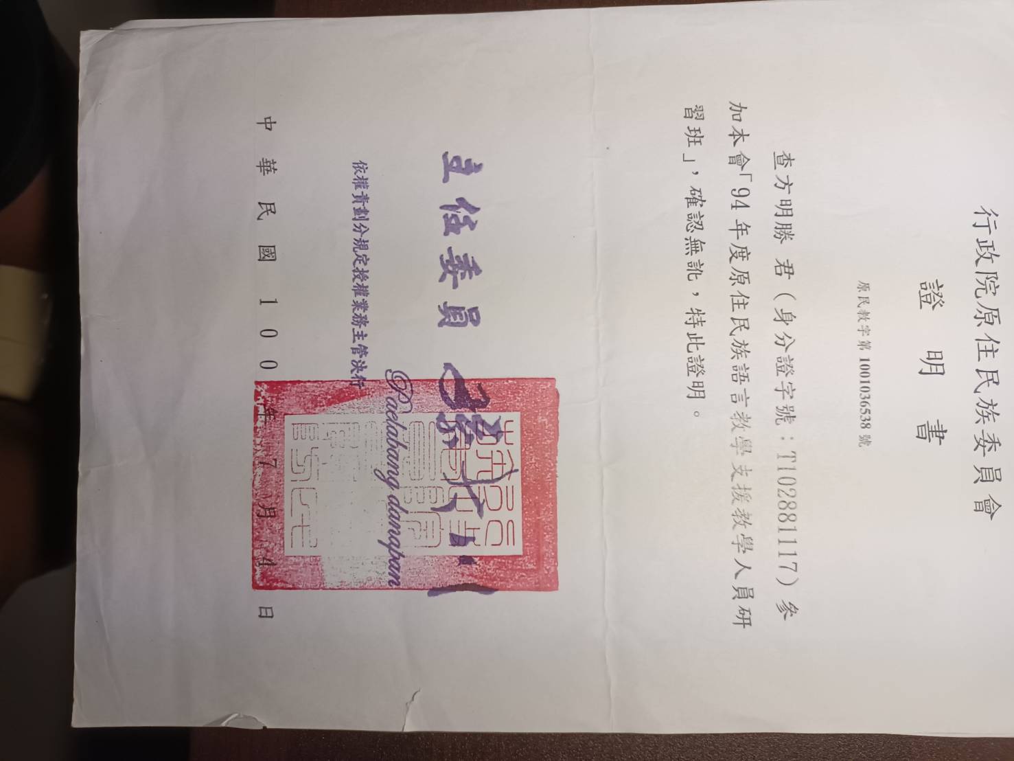 方明勝族語認證