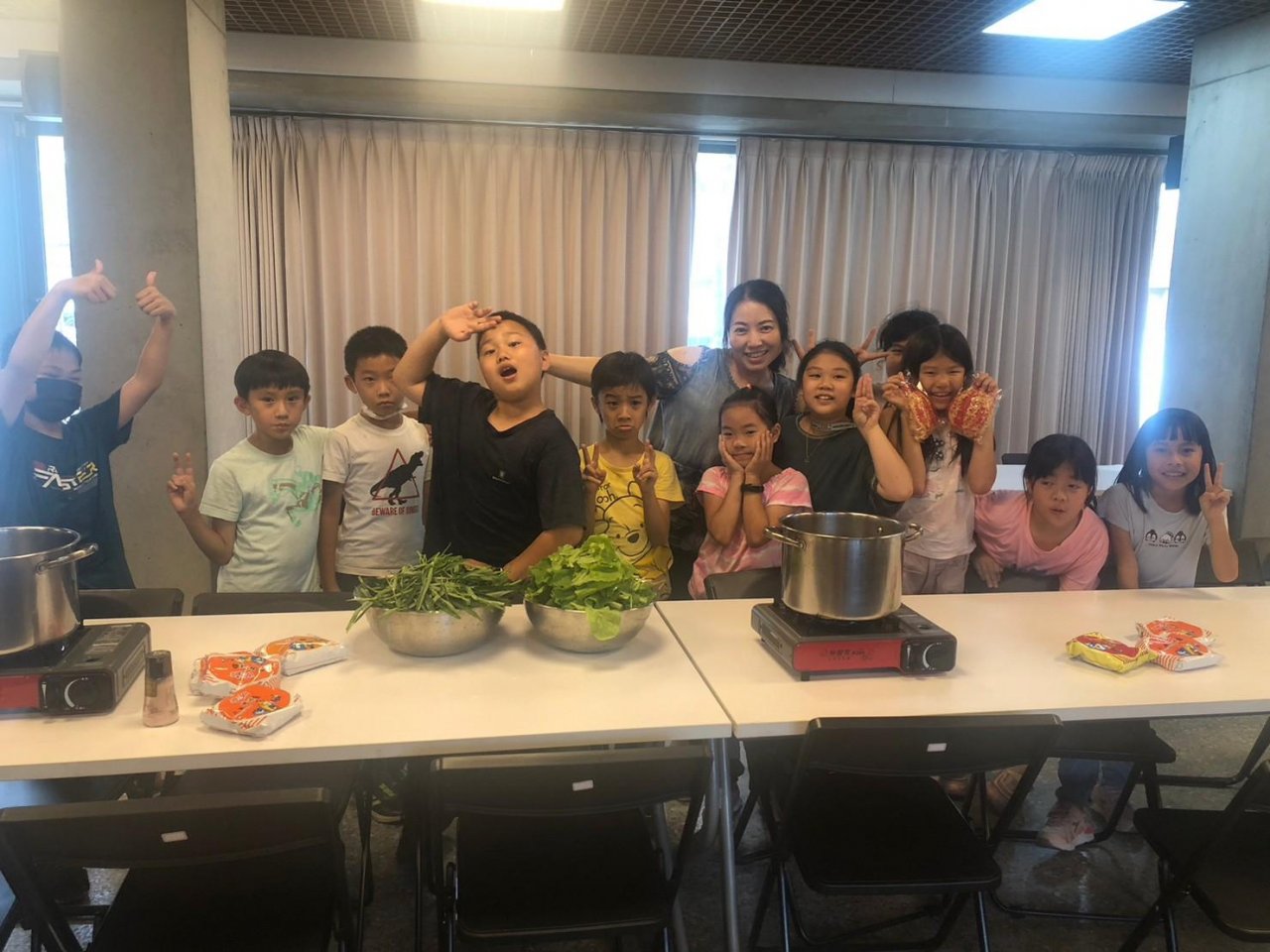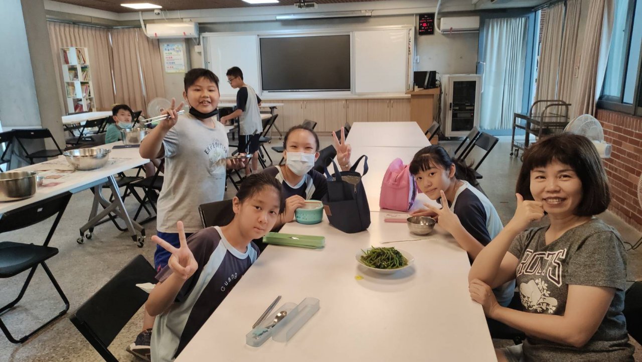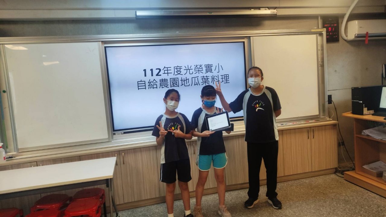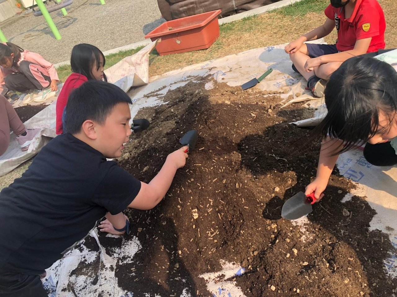 利用校園三處建置盆栽式自給農園,種植空心菜、蘿蔔、青蔥、番茄,從翻土、種下幼苗、澆水、施肥、採收,讓學生實際從做中學,享受採收、烹調與嚐鮮的快樂。