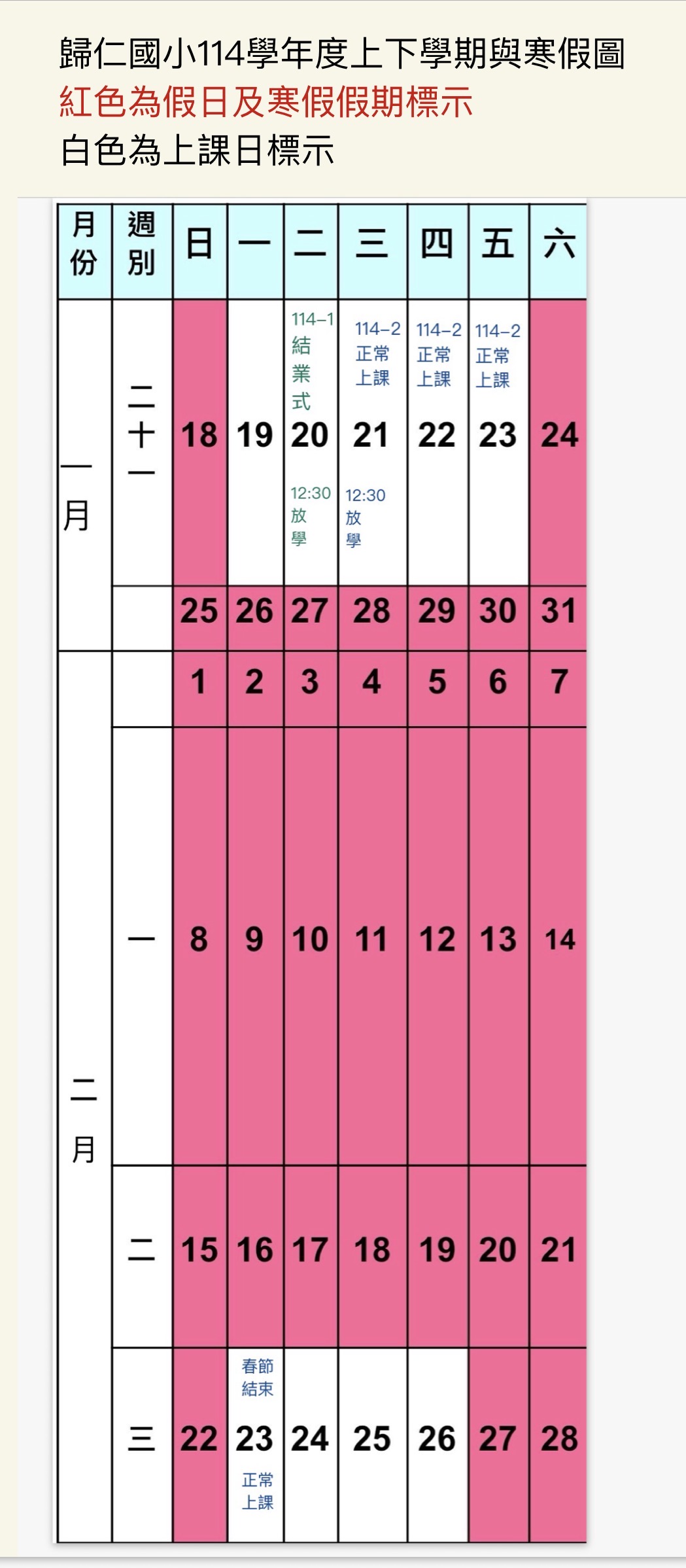 2025-12-19 公告 公告本校114學年度第1學期期末115.1.20(二)至114學年第2學期期初115.1.23(五)學校行事曆,統一說明如下: