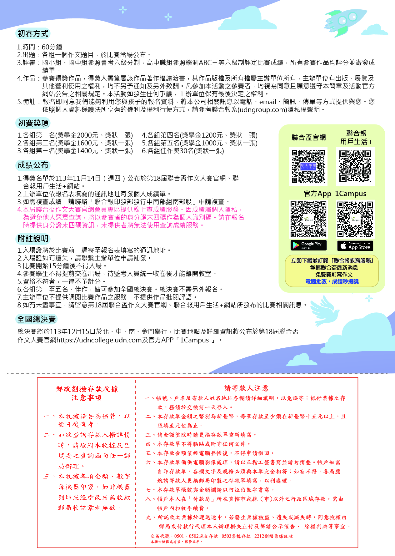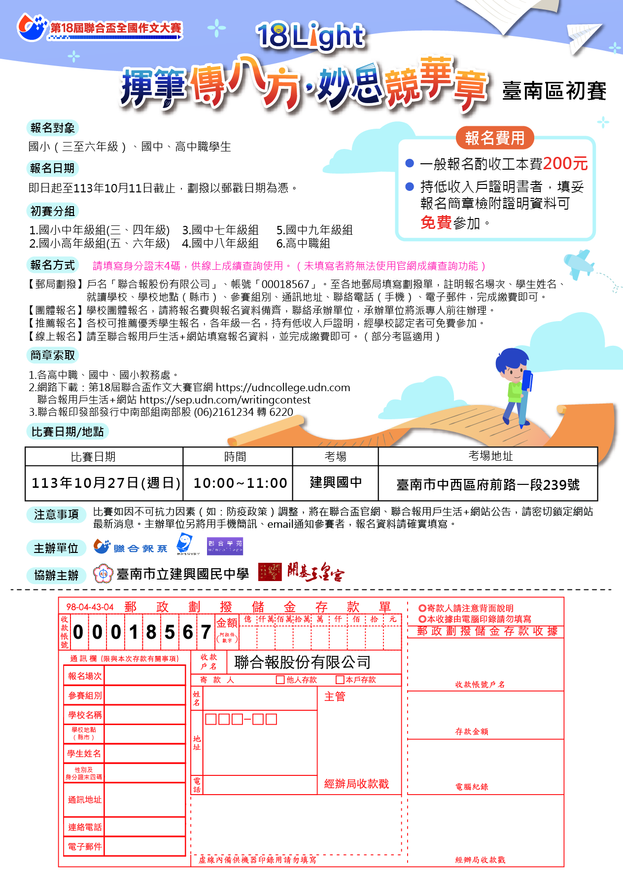 三、檢送活動海報、簡章及團體報名如附件,本案活動請洽聯合報南部發行組(06)216-1234。