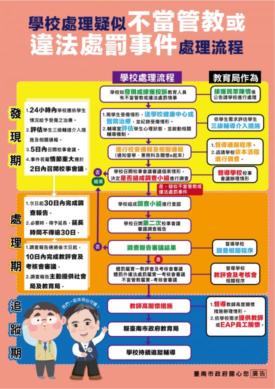 一、依據本局 109 年 10 月 20 日修訂「臺南市政府教育局所屬學校處理疑似不當管教或違法處罰事件注意要點」辦理。