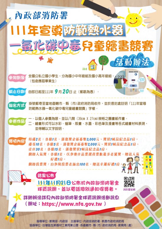 臺南市政府消防局「111 年宣導防範熱水器一氧化碳中毒 兒童繪畫競賽」活動辦法