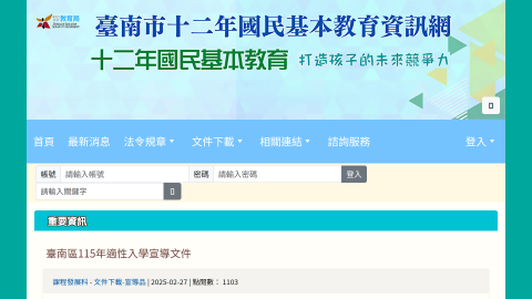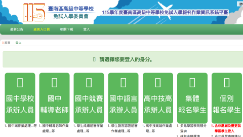 115學年度臺南區高級中等學校免試入學報名作業資訊系統平臺