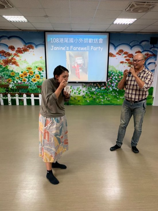 為了迎接外籍教師的到來,港尾師生策劃了一系列的活動。星期一晚上,先帶 Janine 老師到麻豆夜市,讓學生擔任導覽解說,用英語向外師介紹夜市美食。星期三晚上,港尾師長宴請 Janine 老師,歡迎她來到臺灣。星期四上午,搭配聖誕節英語日的規劃,港尾國小更是精心籌備了一個見面歡迎會,由甫拿下今年臺南市英語讀劇比賽特優的學生擔任演出,還有活潑可愛的幼兒園孩子表演太鼓,高年級學生用英語介紹外師出場, Janine 老師則化身聖誕老婆婆,帶小朋友歡唱聖誕歌曲,並結合「金尹傳愛」團隊愛心送暖的聖誕鞋盒活動,發送禮物和糖果給港尾學童,每位港尾的孩子都有一份專屬的聖誕禮物。