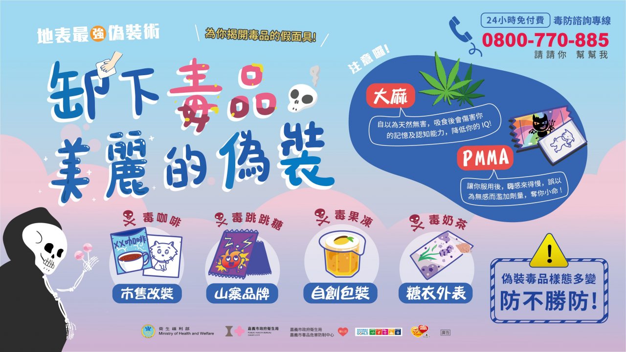 「笑氣危害大,別讓笑氣笑掉你的人生」,歡迎撥打 24 小時免費毒品防制諮詢專線 0800-770-885 (請請您-幫幫我),臺南市政府衛生局關心您。」
