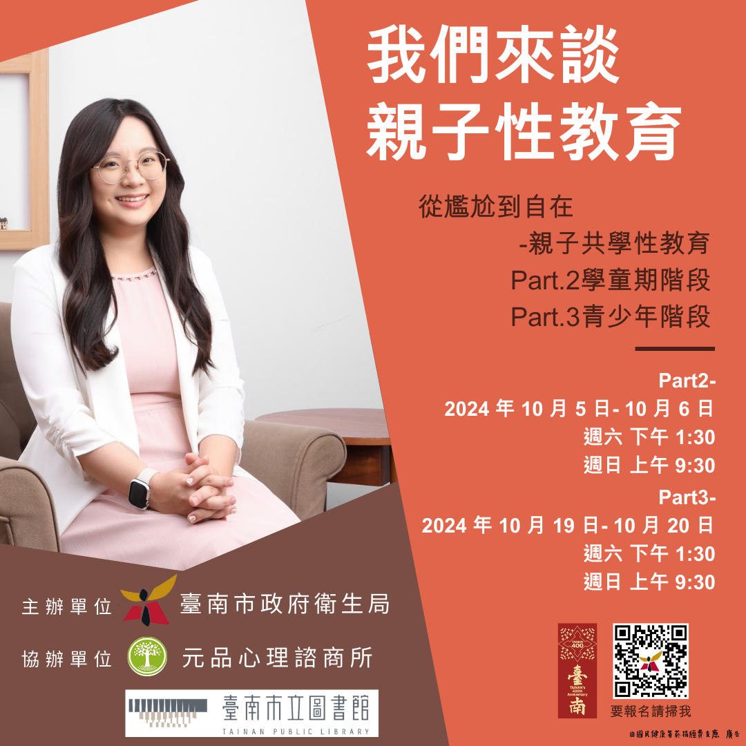 (一)主題: 113 年度親子性教育講座【從尷尬到自在-親子共學性教育】,二大主題系列課程,與家長一起陪伴孩子們成長,了解孩子們從小到大有關性教育的疑惑!