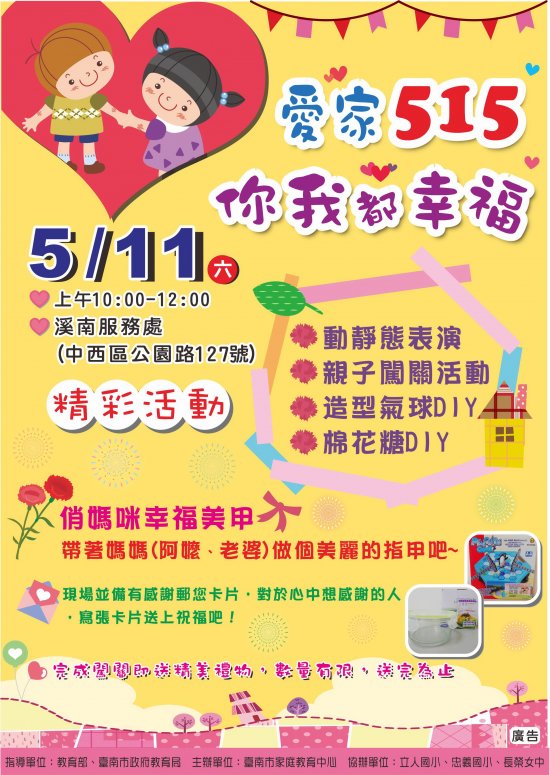 (二)地點:家庭教育中心溪南服務處(中西區公園路127號)