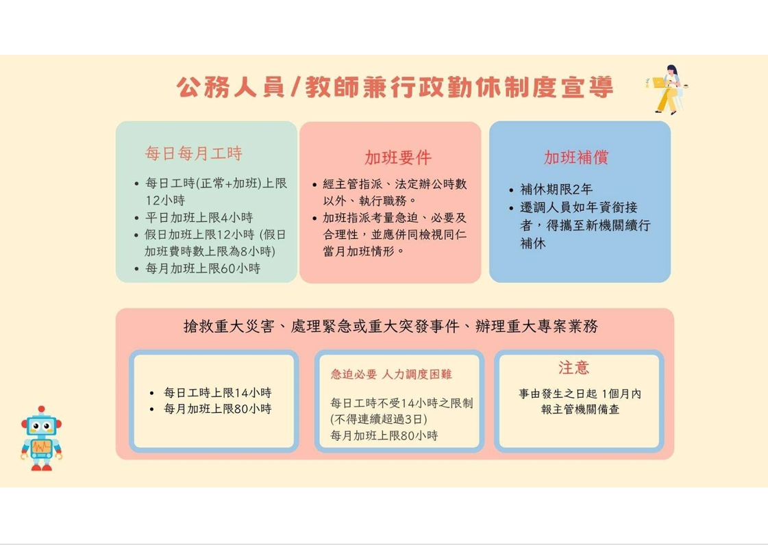 3.各機關年中應清查加班狀況,鼓勵同仁預排定補休,避免加班累積屆期又因機關確實必要範圍內之業務需要,致無法補休而衍生結算計發加班費之問題。