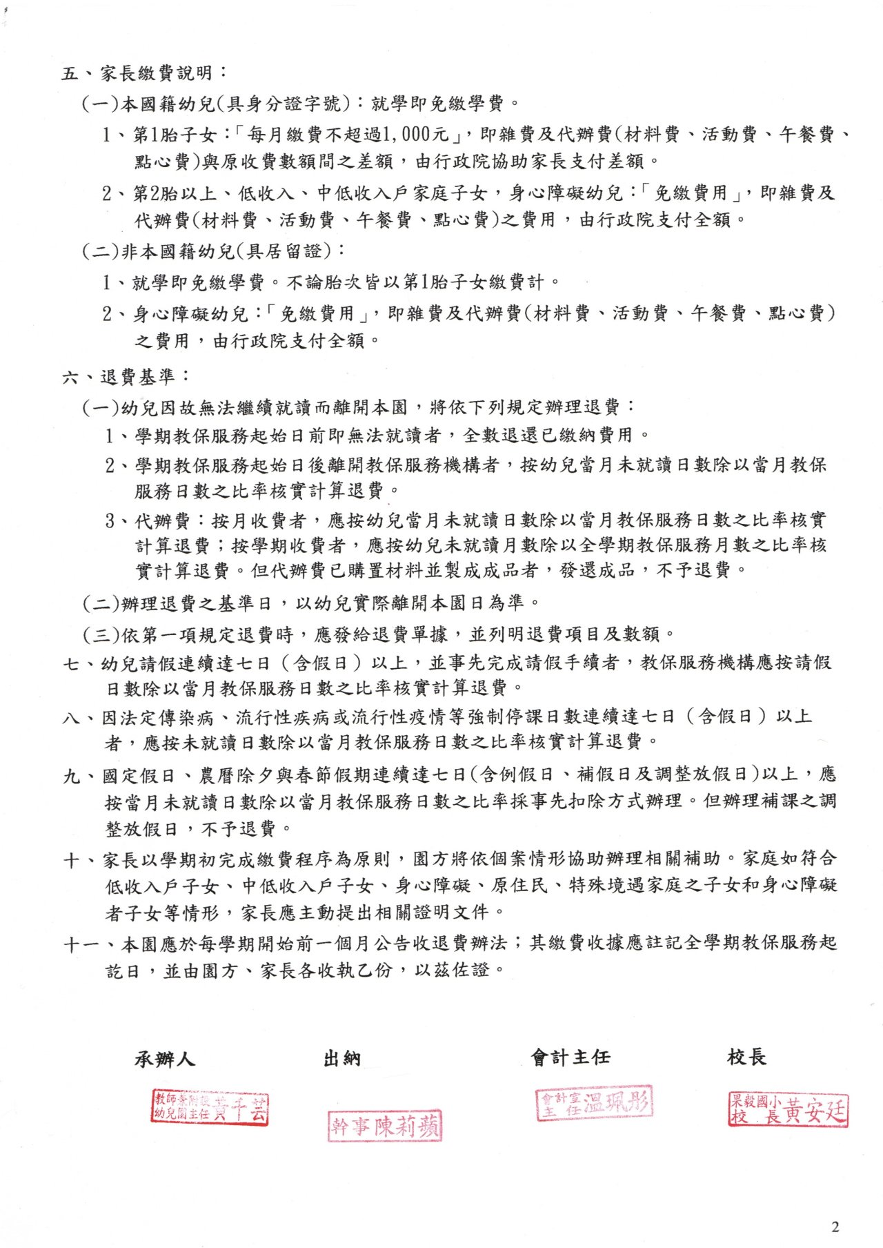114 學年度第 1 學期果毅附幼收退費辦法,請參閱。