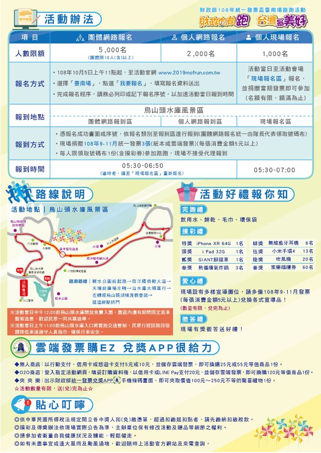 (活動官網https://www.2019mofrun.com.tw/臺南場/),現場報名請於活動當日上午 5 時 30 分至 7 時至會場報名。