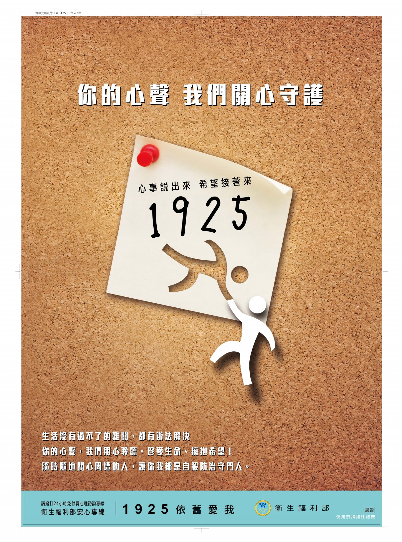 衛生福利部為讓民眾多關心自己與身邊的人,若有心情低落、情緒困擾,請多利用 1925 安心專線。