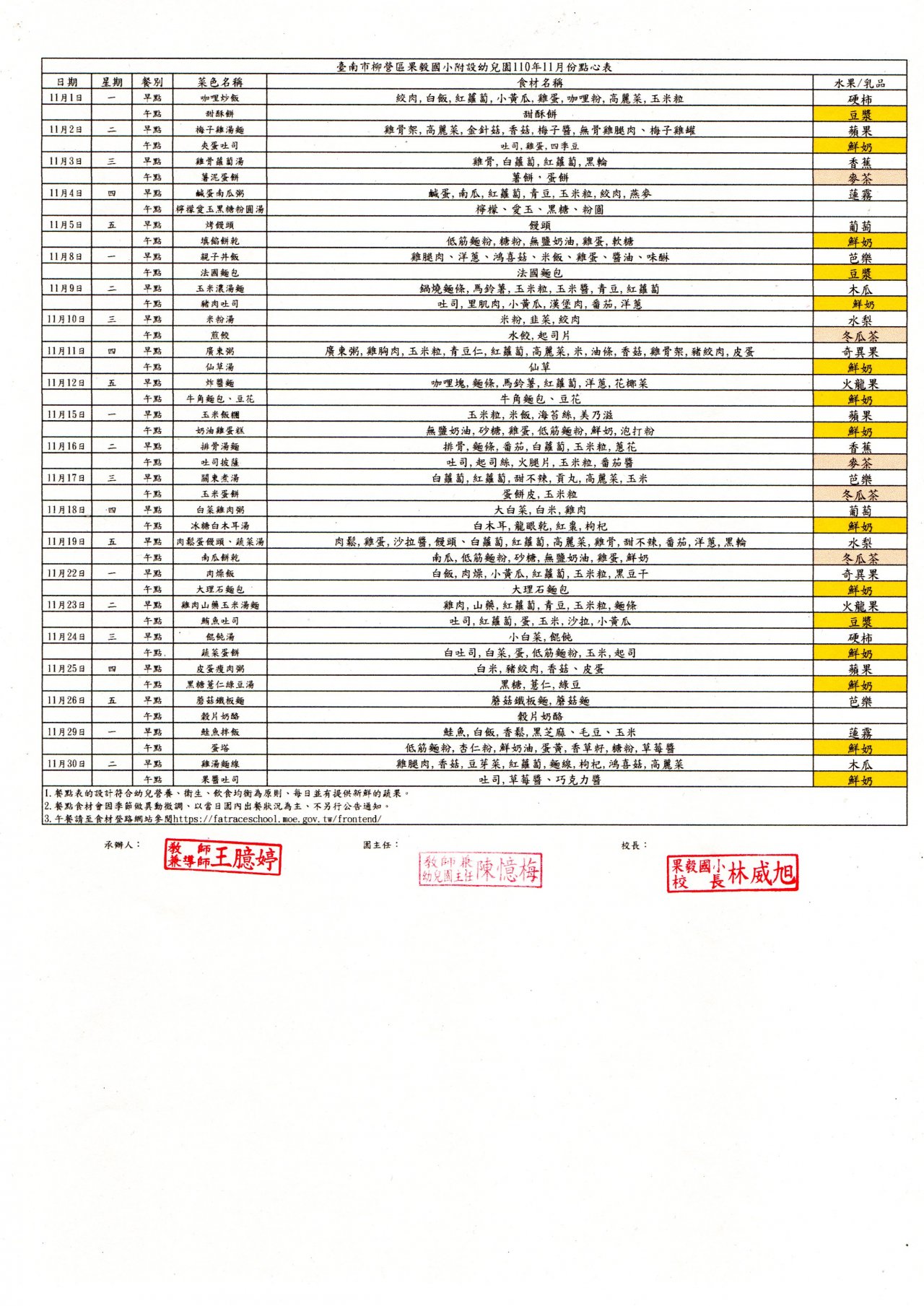 110 學年度幼兒園第一學期 11 月份點心表,如附件。