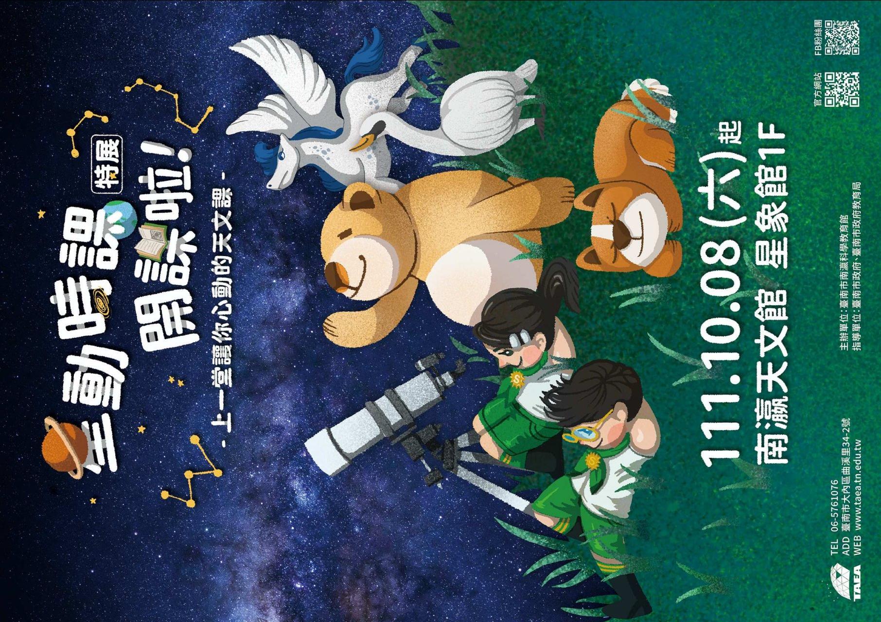 一、本館新展覽「星動時課開課啦!特展」訂於 111 年 10 月 8 日(星期六)開幕,歡迎全家共遊,蒞臨參觀。