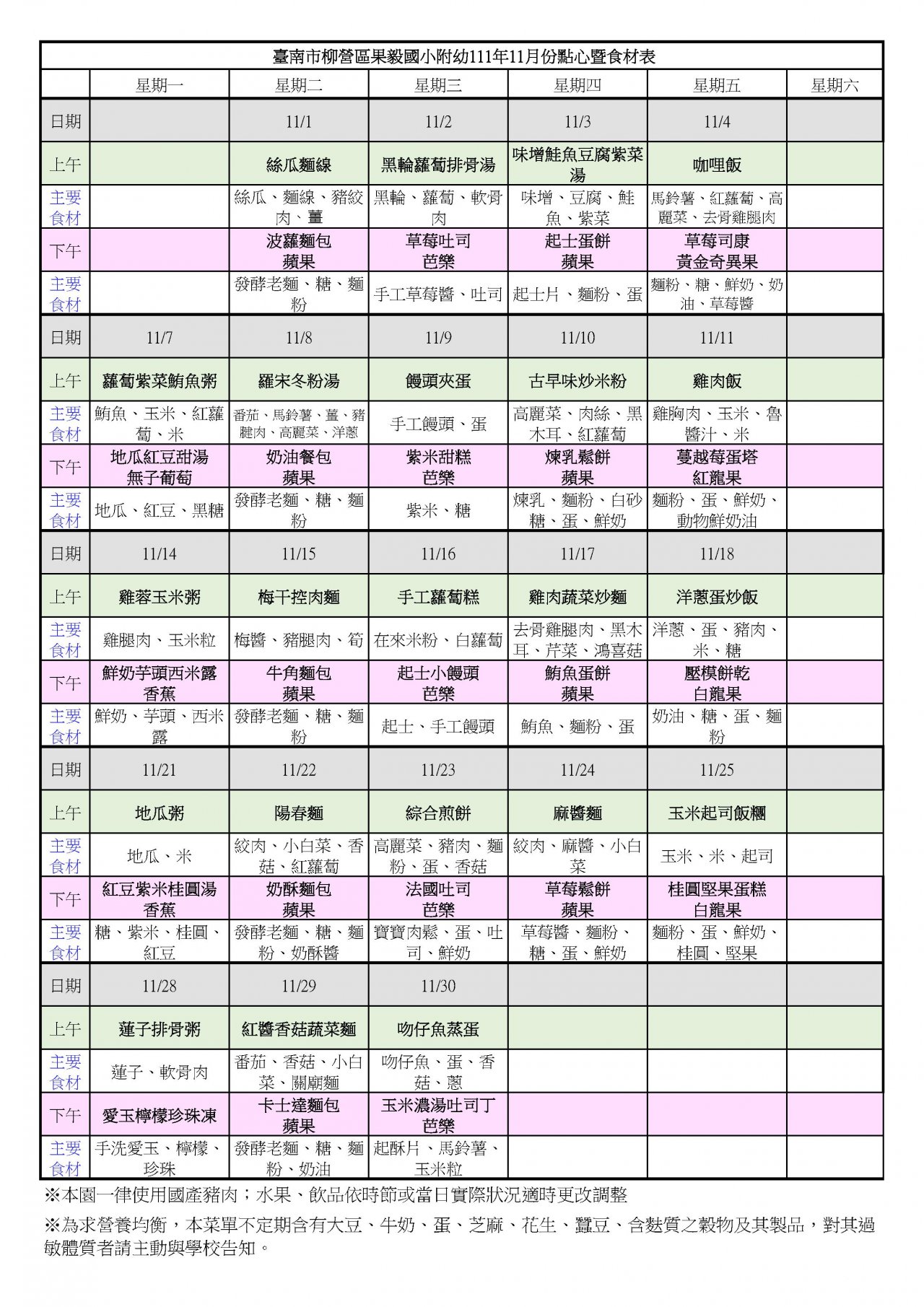 ※為求營養均衡,本菜單不定期含有大豆、牛奶、蛋、芝麻、花生、蠶豆、含麩質之穀物及其製品,對其過敏體質者請主動與學校告知。