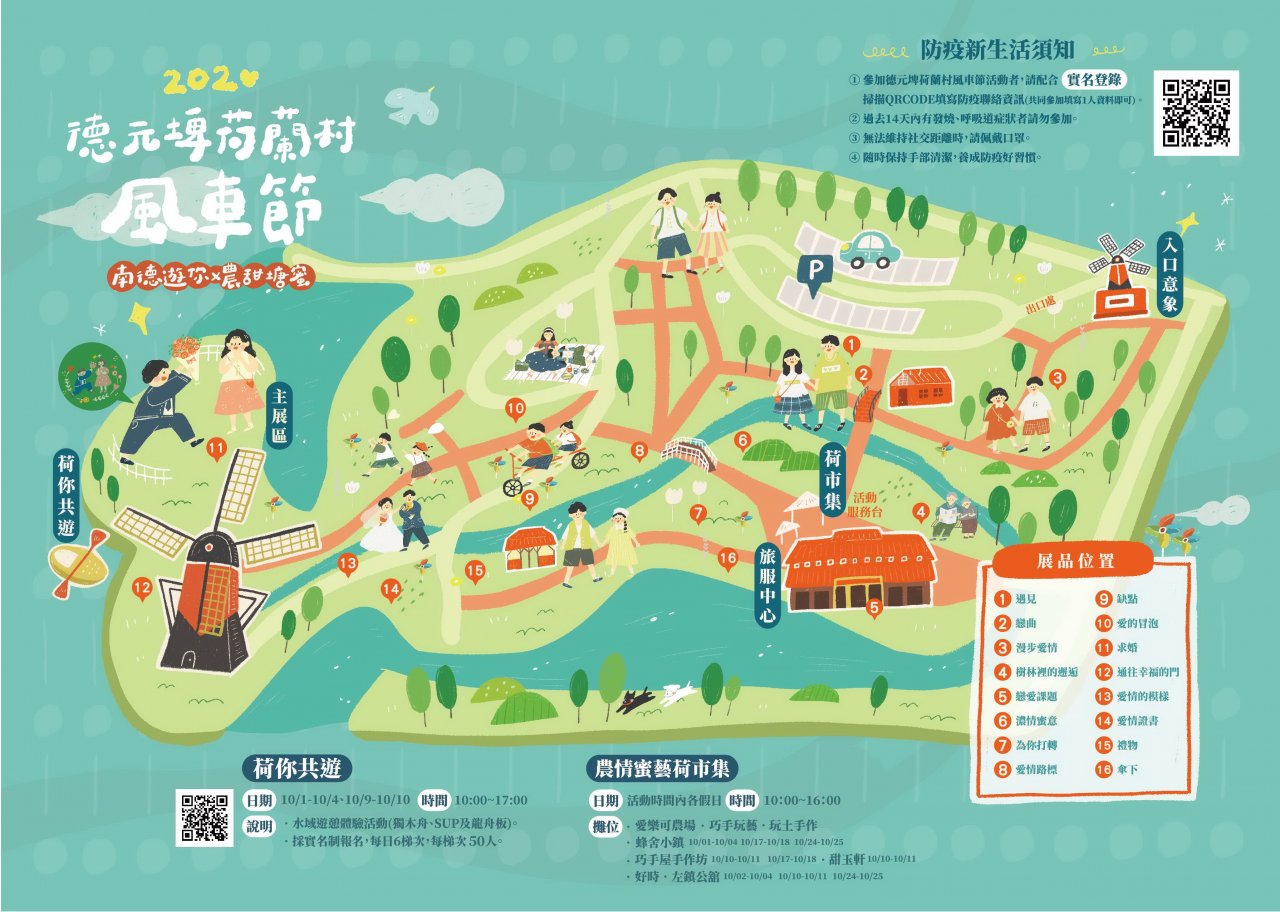 主旨:檢送本局「2020 德元埤荷蘭村風車節」活動宣傳摺頁(電子檔),請貴單位惠予協助於線上宣傳周知同仁及所屬,俾利活動圓滿舉行,請查照。 說明:活動詳情可洽本局(06-6350190)及德元埤旅遊服務中心(06-6231896)。