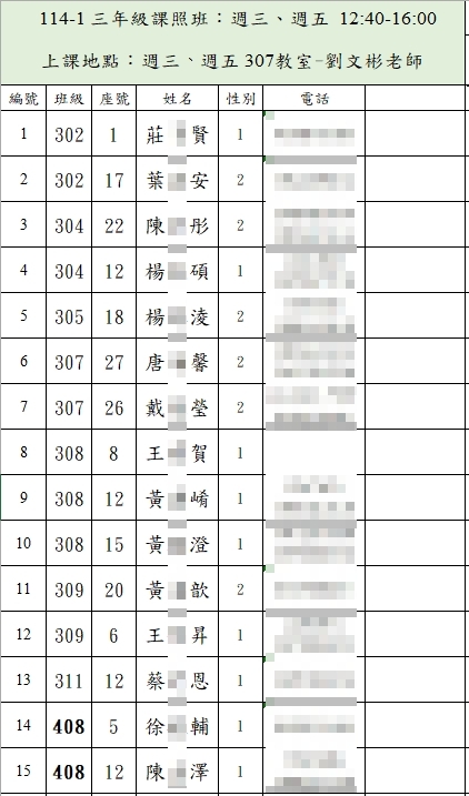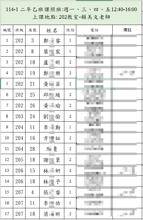 - 本校 114 學年度第一學期兒童課後照顧班開班結果詳如附件,敬請點閱。(以下開班,上課時間皆為 12:40-16:00 。)