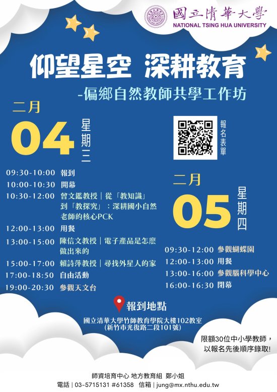 一、來文依據國立清華大學 115 年 1 月 9 日清師培字第 1159000247 號函辦理。