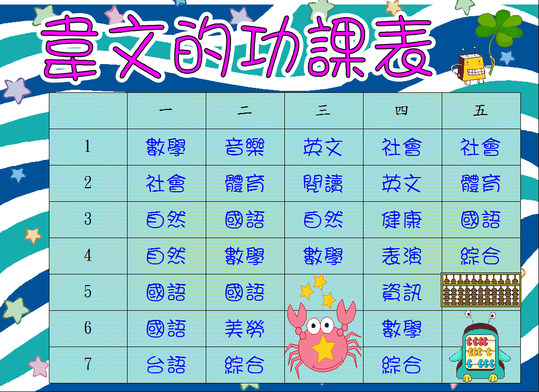 投稿題目:功課表