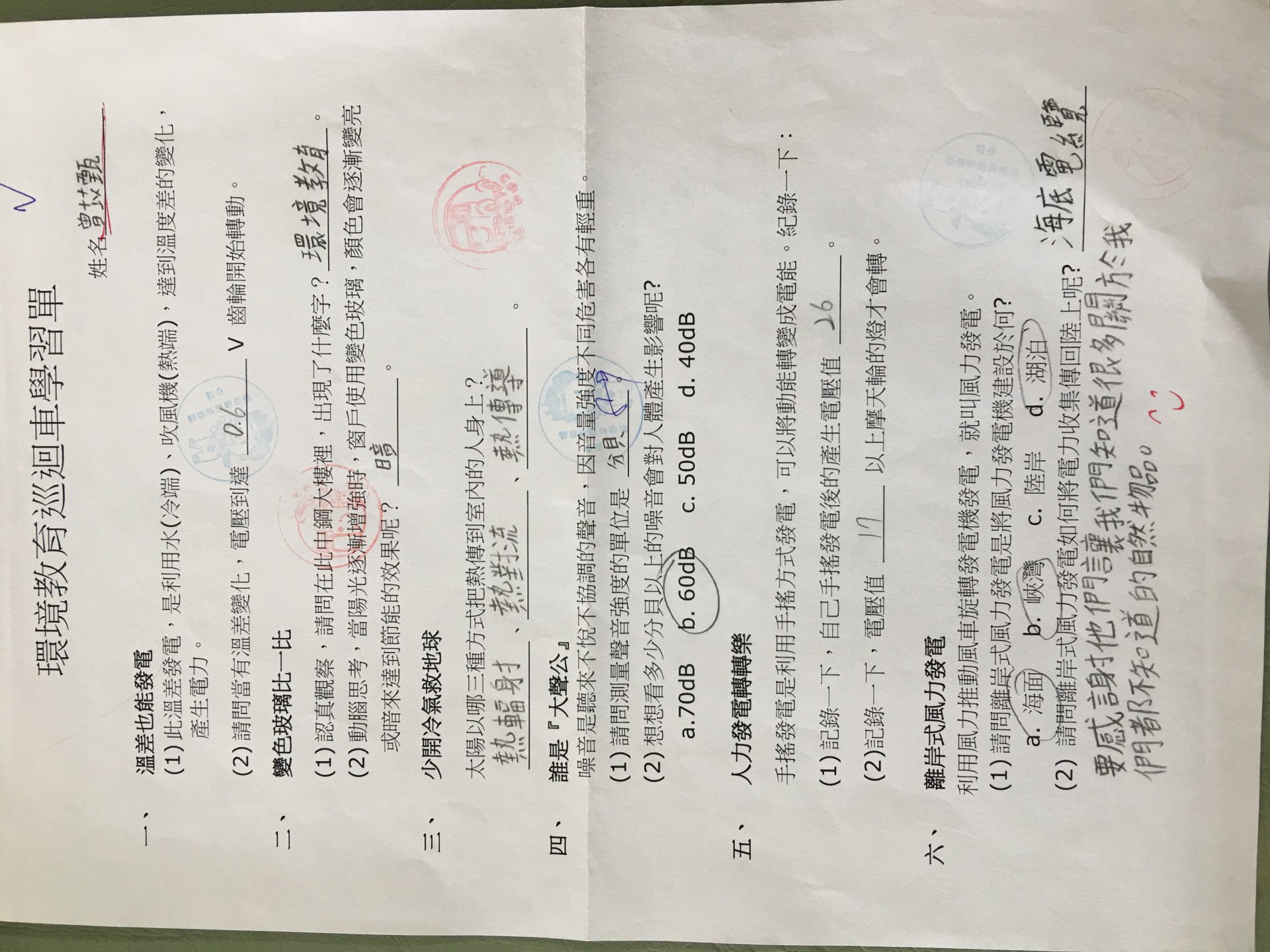 投稿題目:環境教育巡迴車學習單