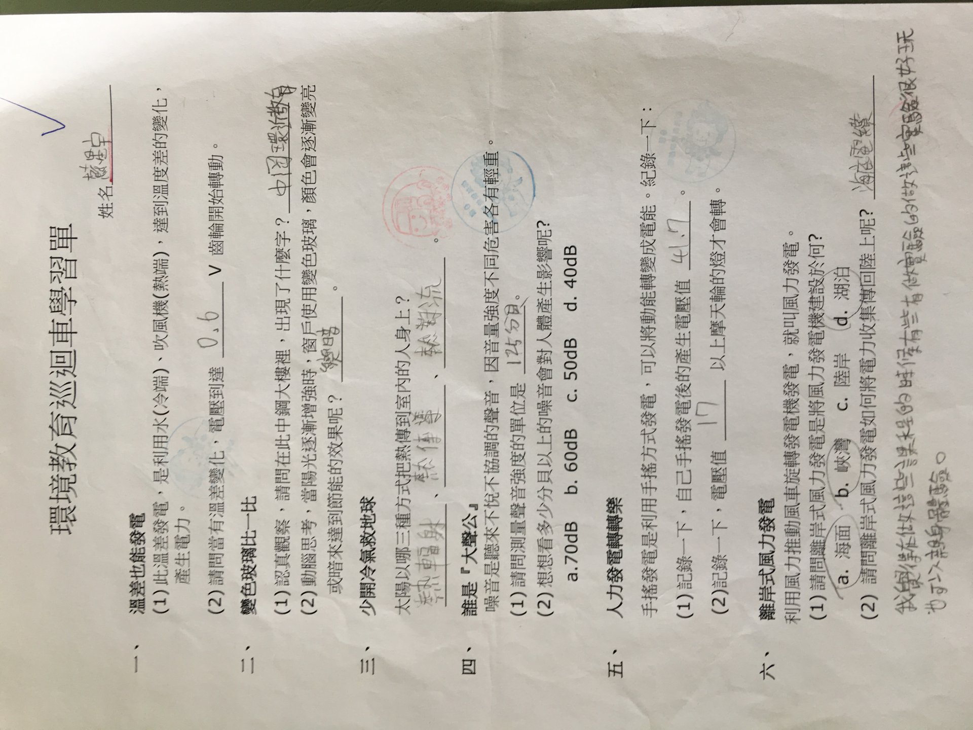 投稿題目:環境教育巡迴車學習單