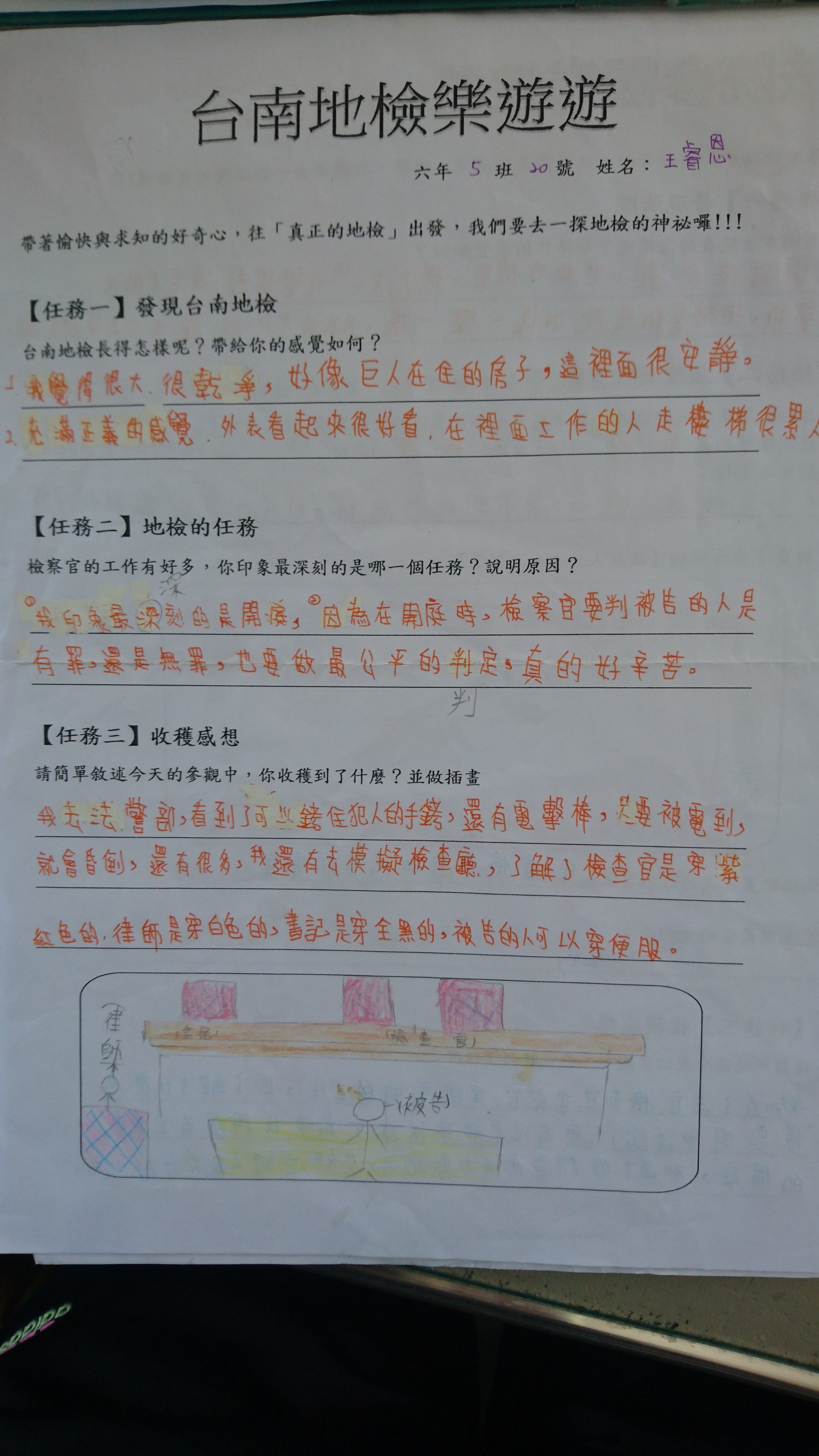 投稿題目:法院參觀學習單