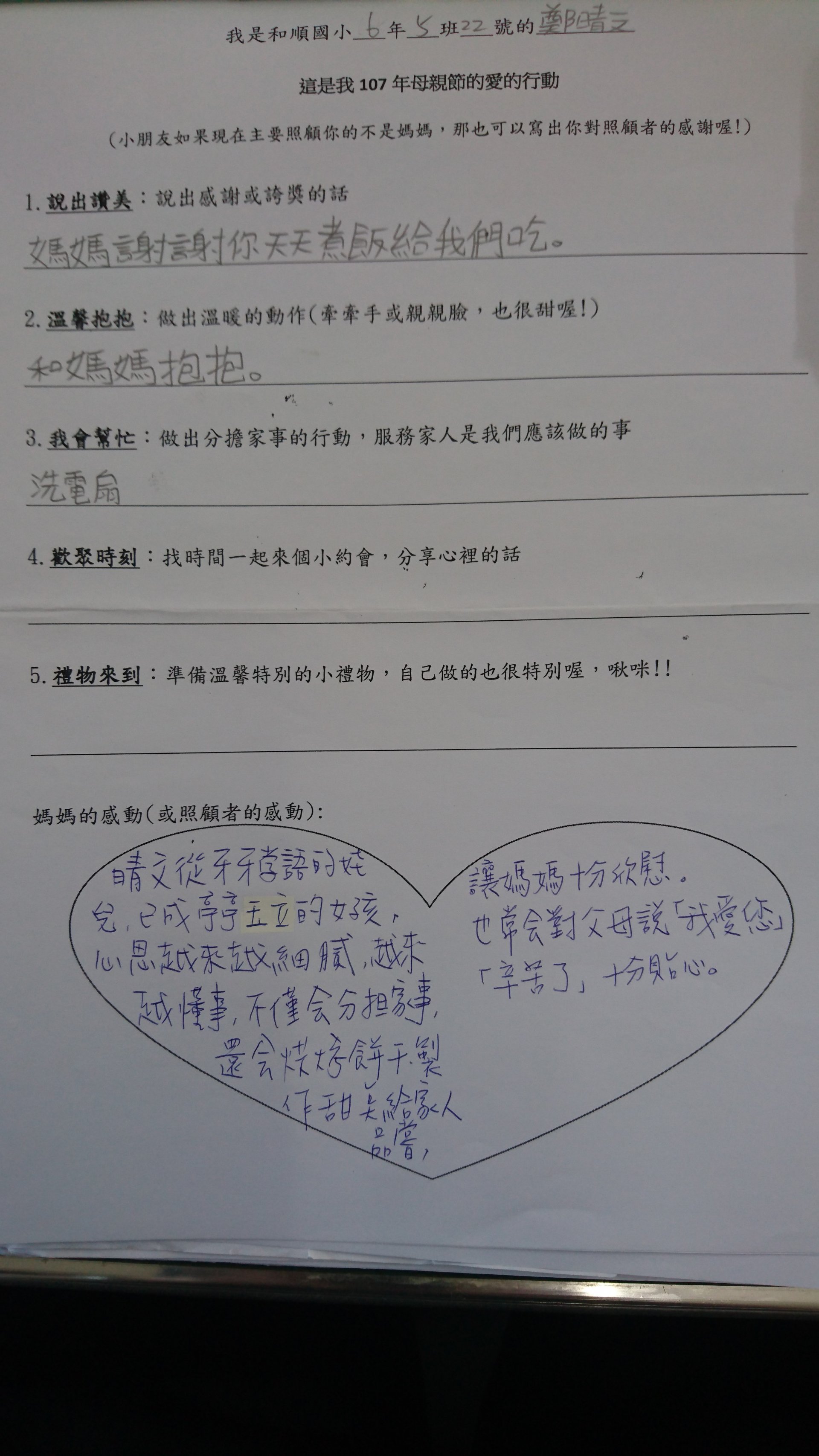 投稿題目:母親節學習單