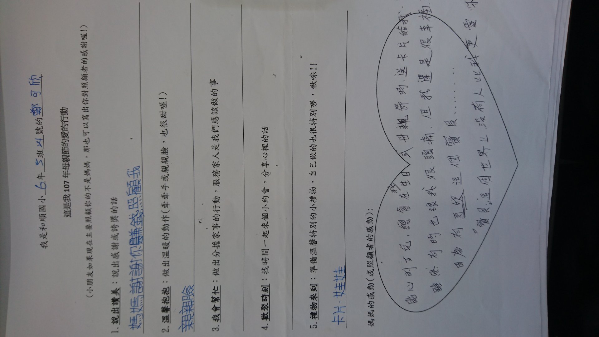 投稿題目:母親節學習單