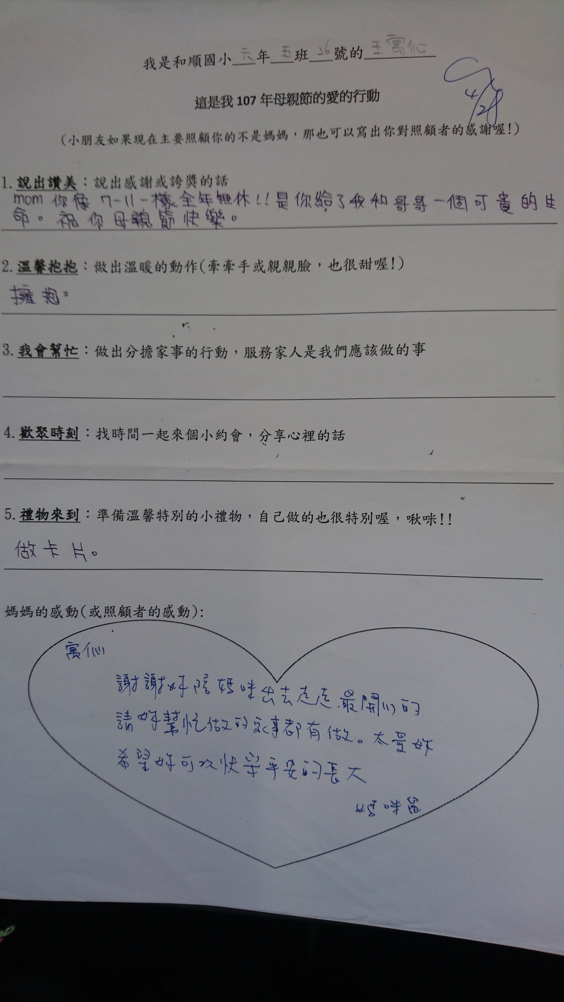 投稿題目:母親節學習單